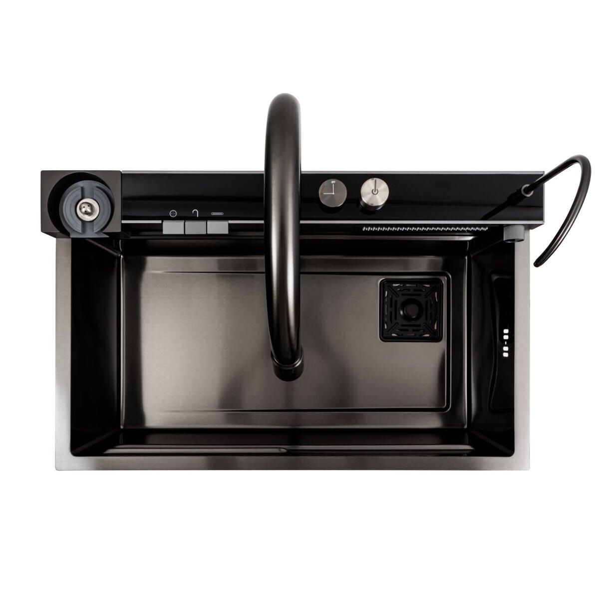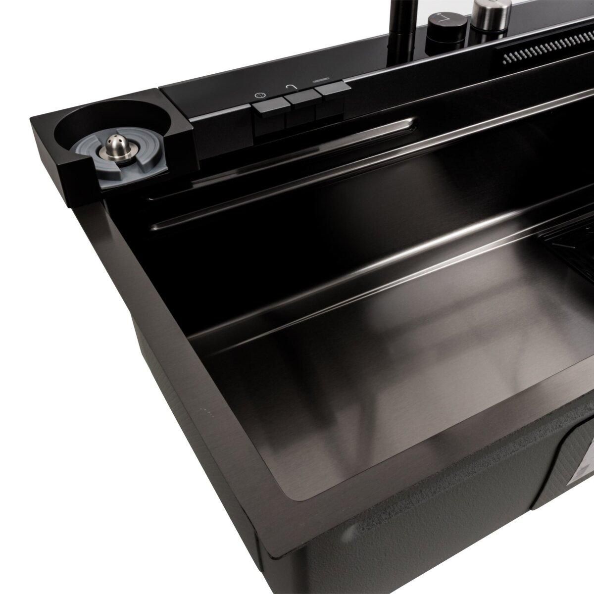 Кухонна мийка 75*46D PVD чорна Platinum Handmade "ВОДОСПАД" — неймовірно популярна кухонна мийка, справжнє відкриття ! Її багатофункціональність і комплектація зі змішувачем роблять її незамінним аксесуаром для будь-якої кухні.