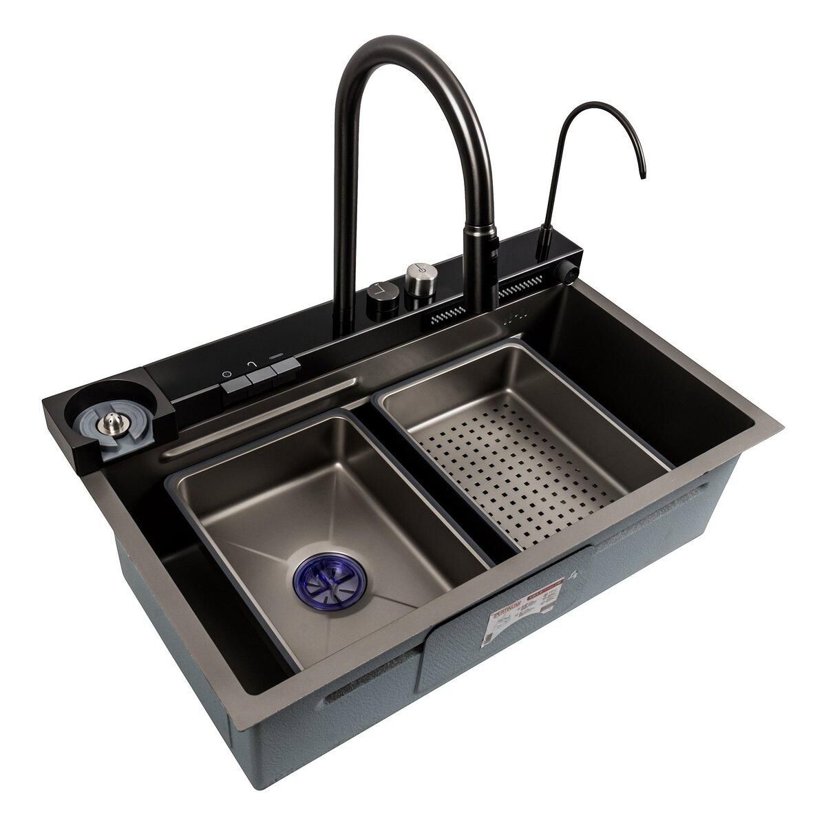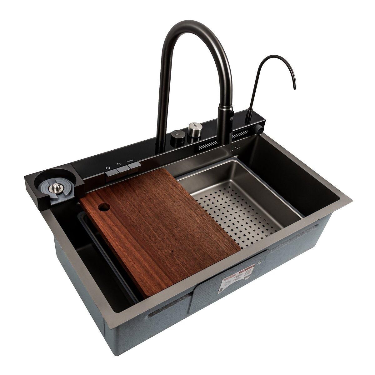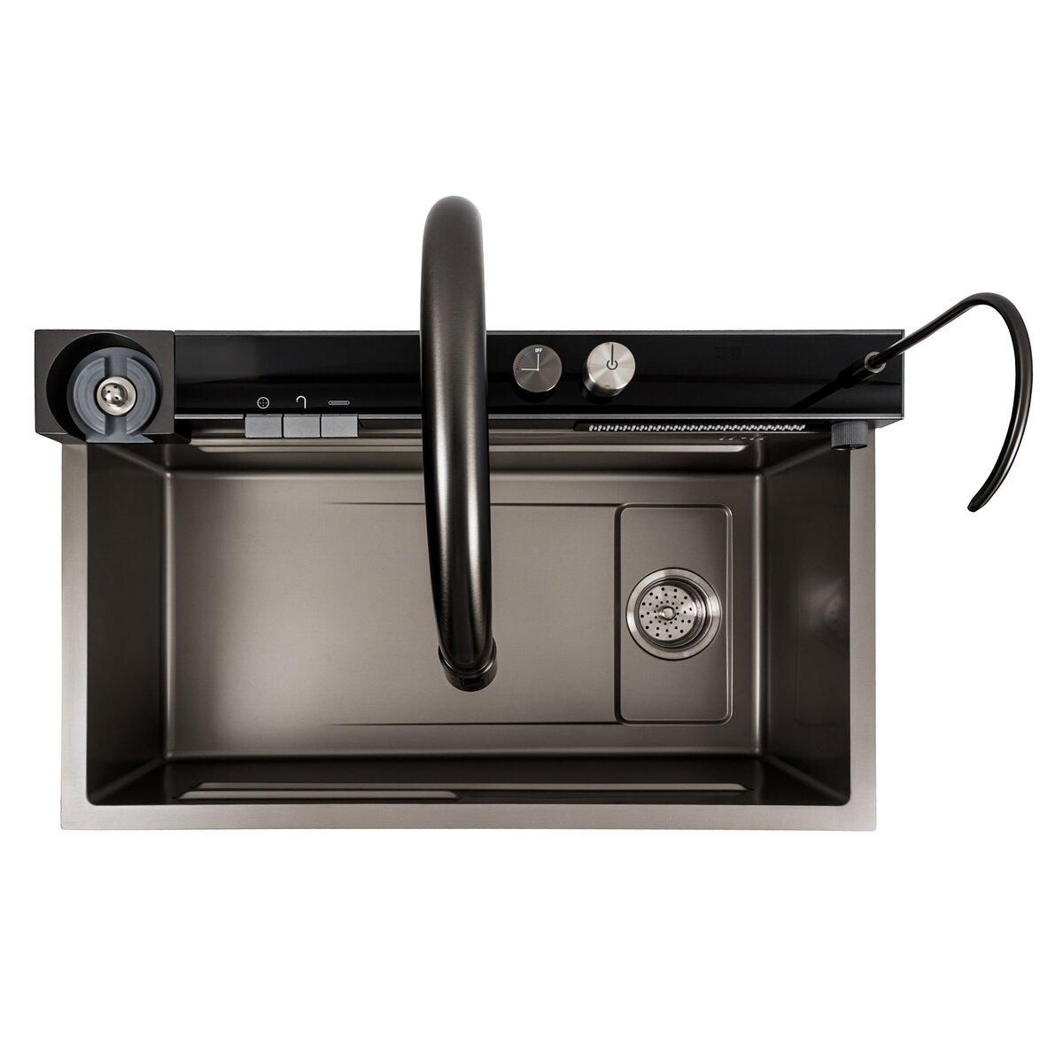 Кухонна мийка 75*46D PVD сіра Platinum Handmade "ВОДОСПАД" — неймовірно популярна кухонна мийка, справжнє відкриття ! Її багатофункціональність і комплектація зі змішувачем роблять її незамінним аксесуаром для будь-якої кухні.