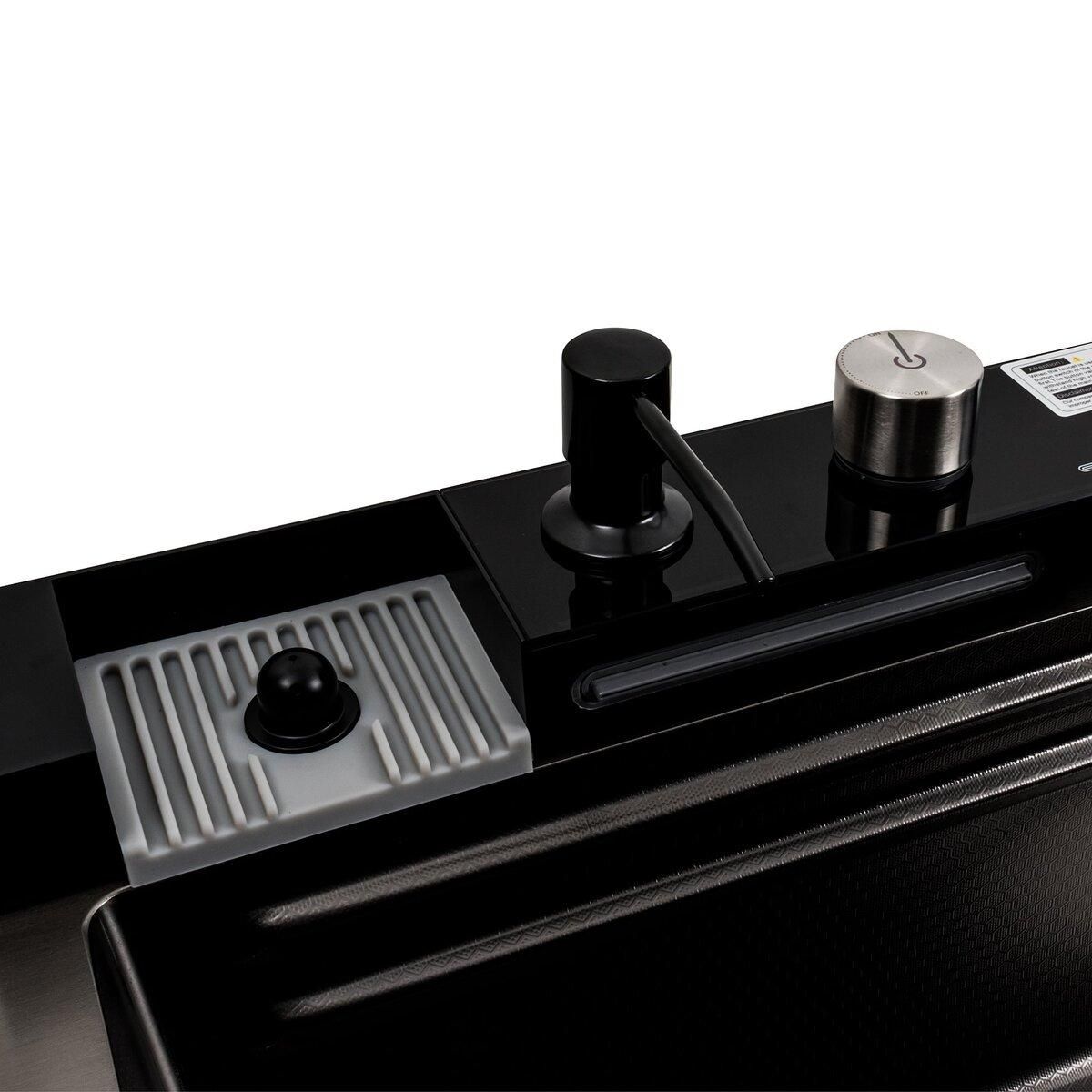 Чорна кухонна мийка 75*45М PVD Platinum Handmade "Водоспад"