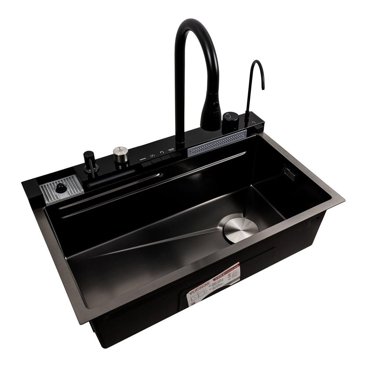 Кухонна мийка 75*45М PVD чорна Platinum Handmade "Водоспад"