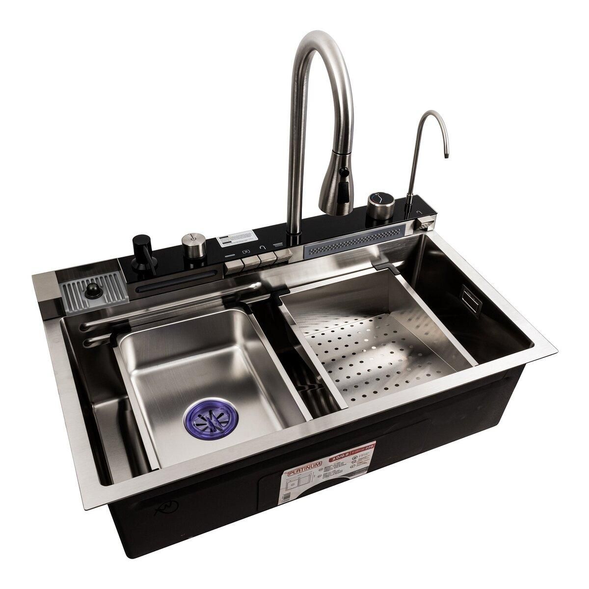 Кухонна мийка 75*45G сатин Platinum Handmade "Водоспад" з повною комплектацією