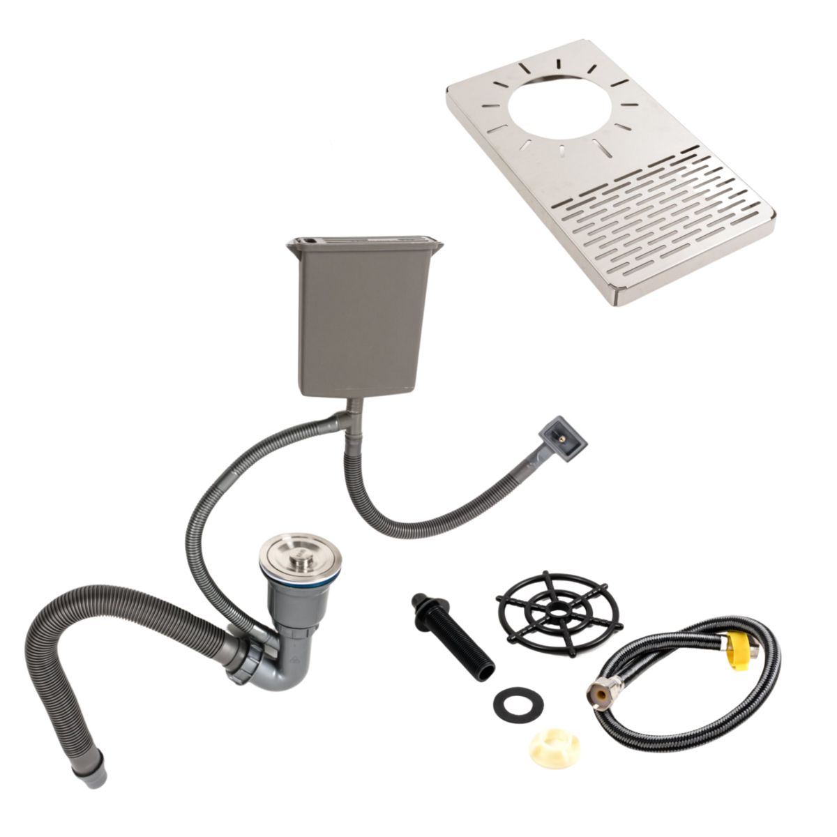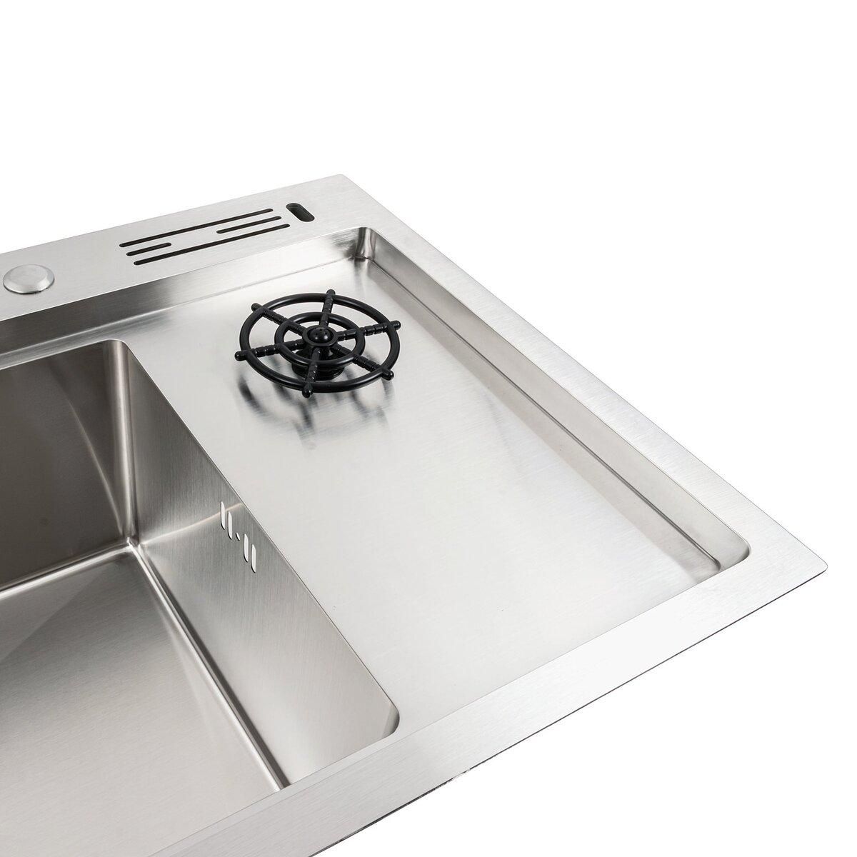 Кухонна мийка обладнана двома отворами під дозатор та змішувач, щоб забезпечити зручність в процесі приготування їжі. В комплекті йде підставка для ножів, ополіскувач для склянок та круглий сифон, забезпечуючи бездоганну гігієну вашої кухні.