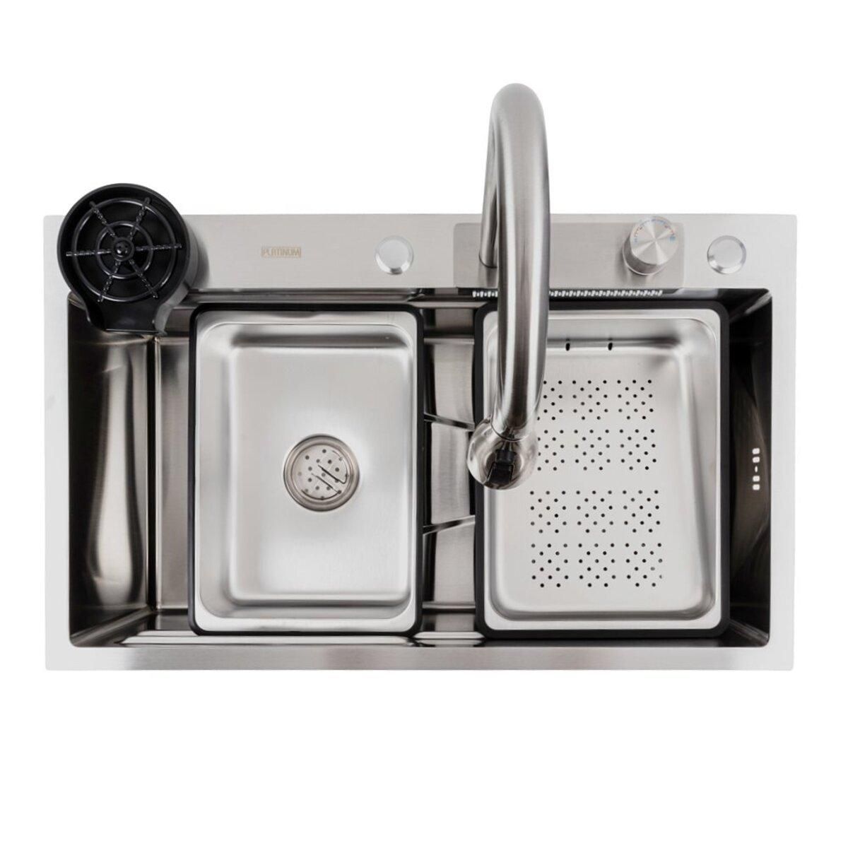 Кухонна мийка 75*45G сатин Platinum Handmade "Водоспад" з повною комплектацією