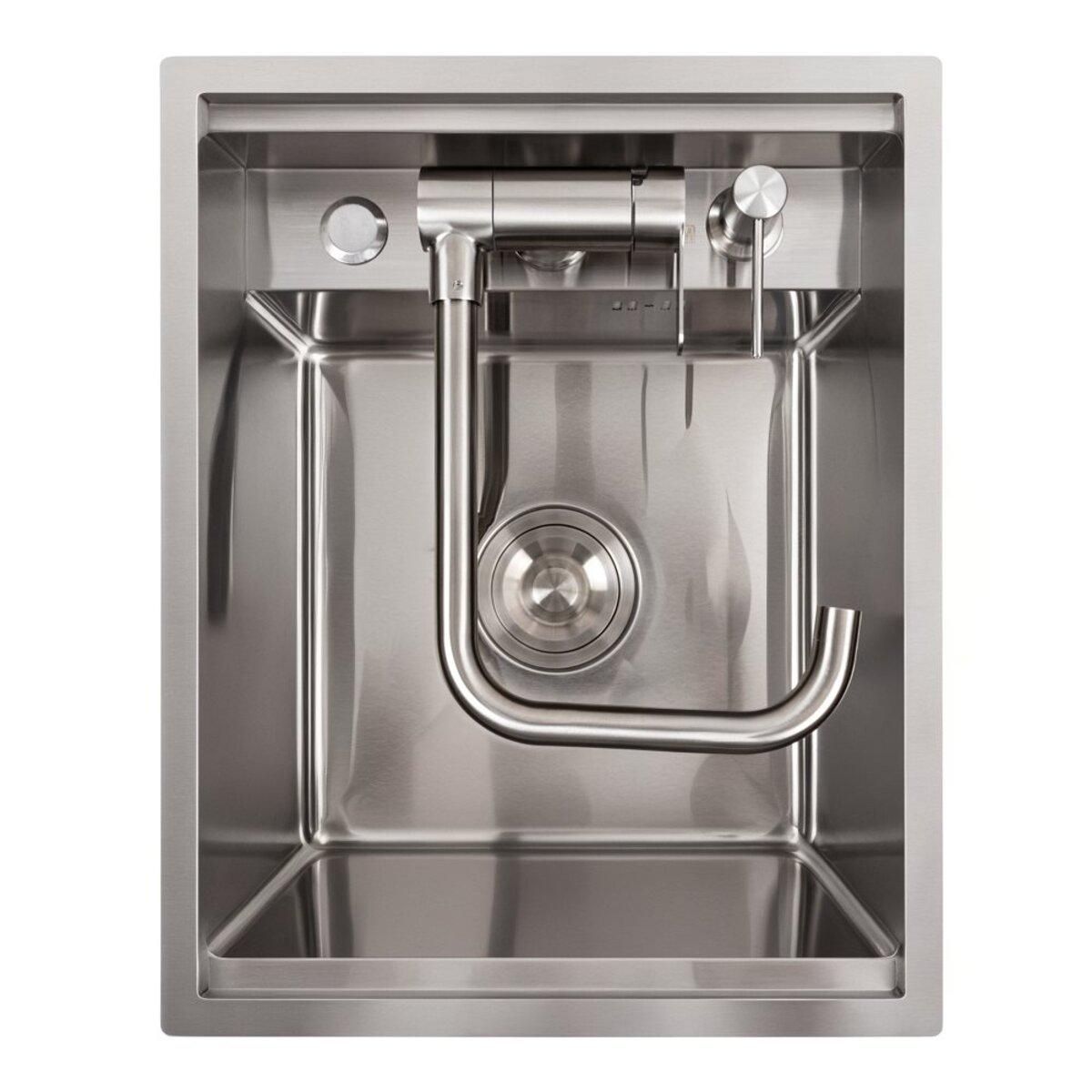 Зовнішній розмір мийки — 400x500 мм, а простора чаша розміром 340x340 мм та глибиною 220 мм забезпечує зручність під час миття великих посудин і продуктів. Мийка має товщину 3.0/0.8 мм та виготовлена з високоякісної нержавіючої сталі SUS 201, що забезпечує її міцність та надійність при тривалому використанні.