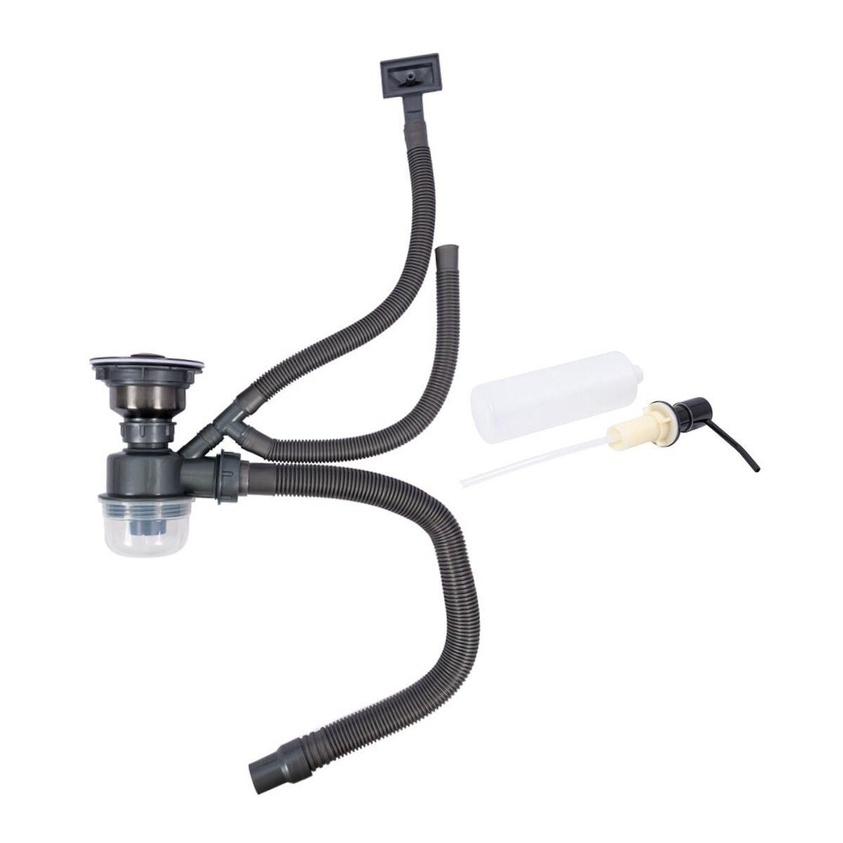 Повний комплект: Мийка постачається з круглим сифоном (товщина металу 3,0 мм / товщина стінок 0,8 мм), готовим до встановлення.