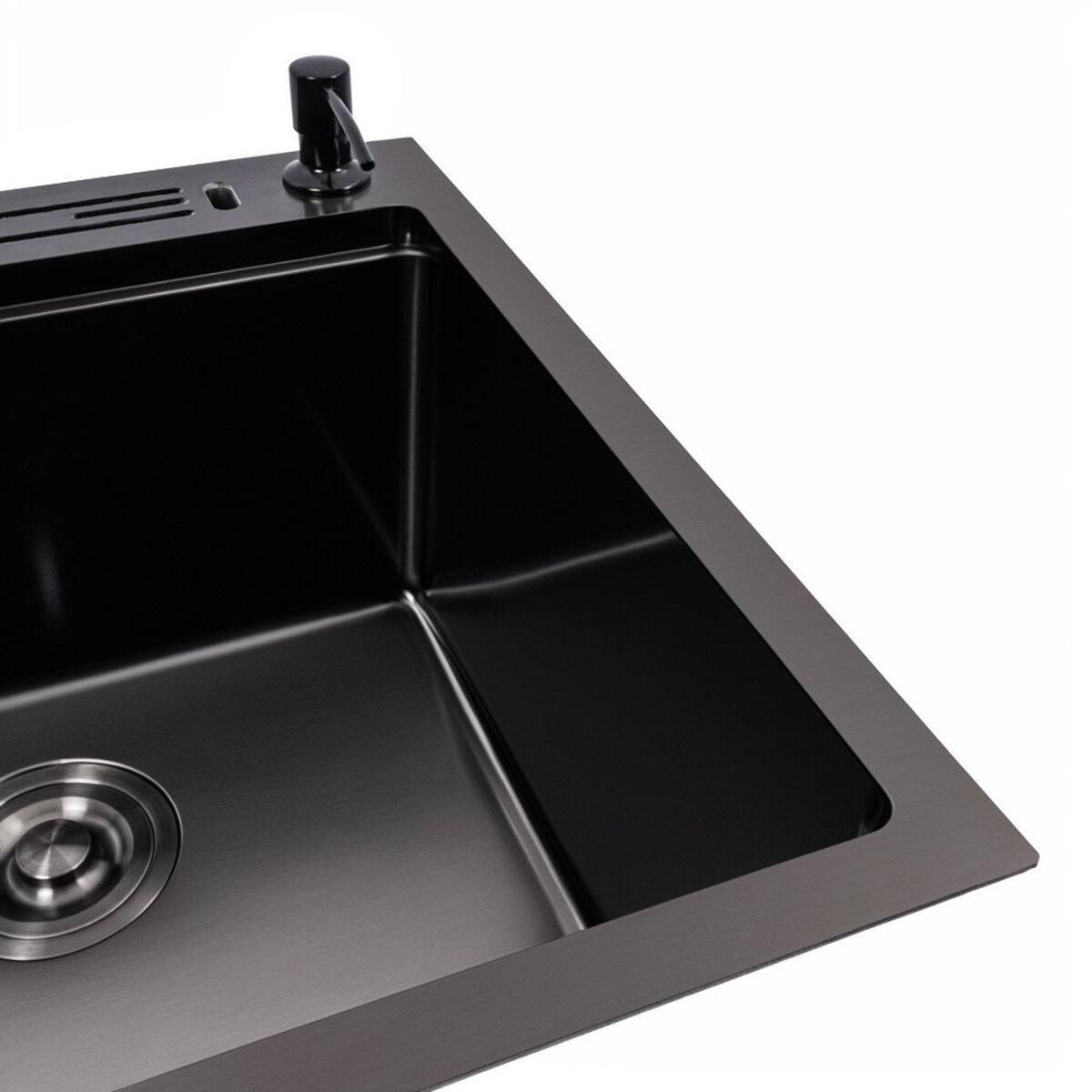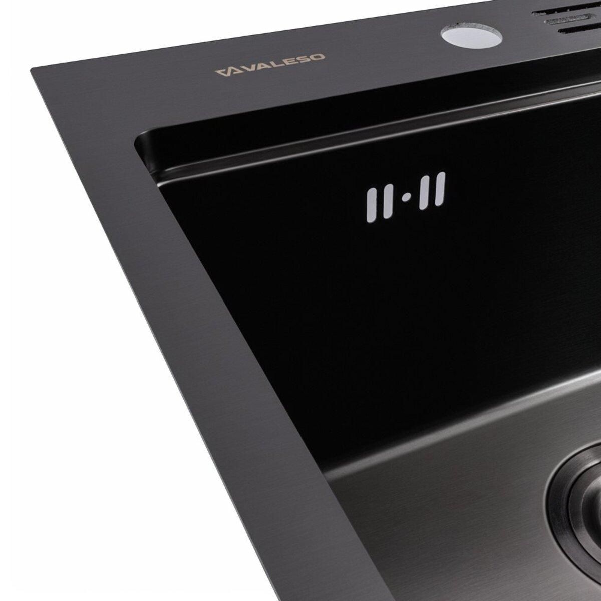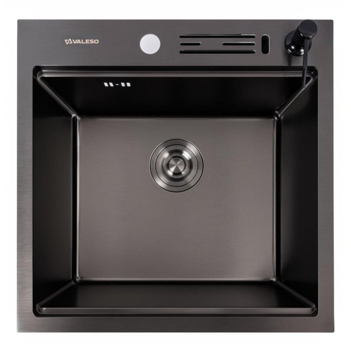 Кухонна мийка PVD чорна 50*50 VALESO Handmade з підставкою для ножів (сифон круглий, 3,0/0,8)