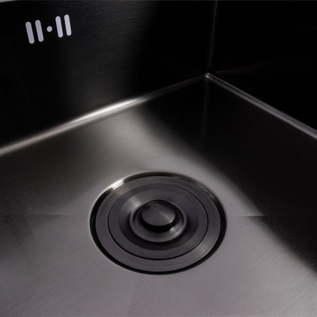 Зовнішній розмір мийки — 500x500 мм, а простора чаша розміром 460х490 мм та глибиною 220 мм забезпечує зручність під час миття великих посудин і продуктів. Мийка має товщину 3,0/0,8 мм та виготовлена з високоякісної нержавіючої сталі SUS 201 з PVD покриттям чорного кольору, що забезпечує її міцність та надійність при тривалому використанні.