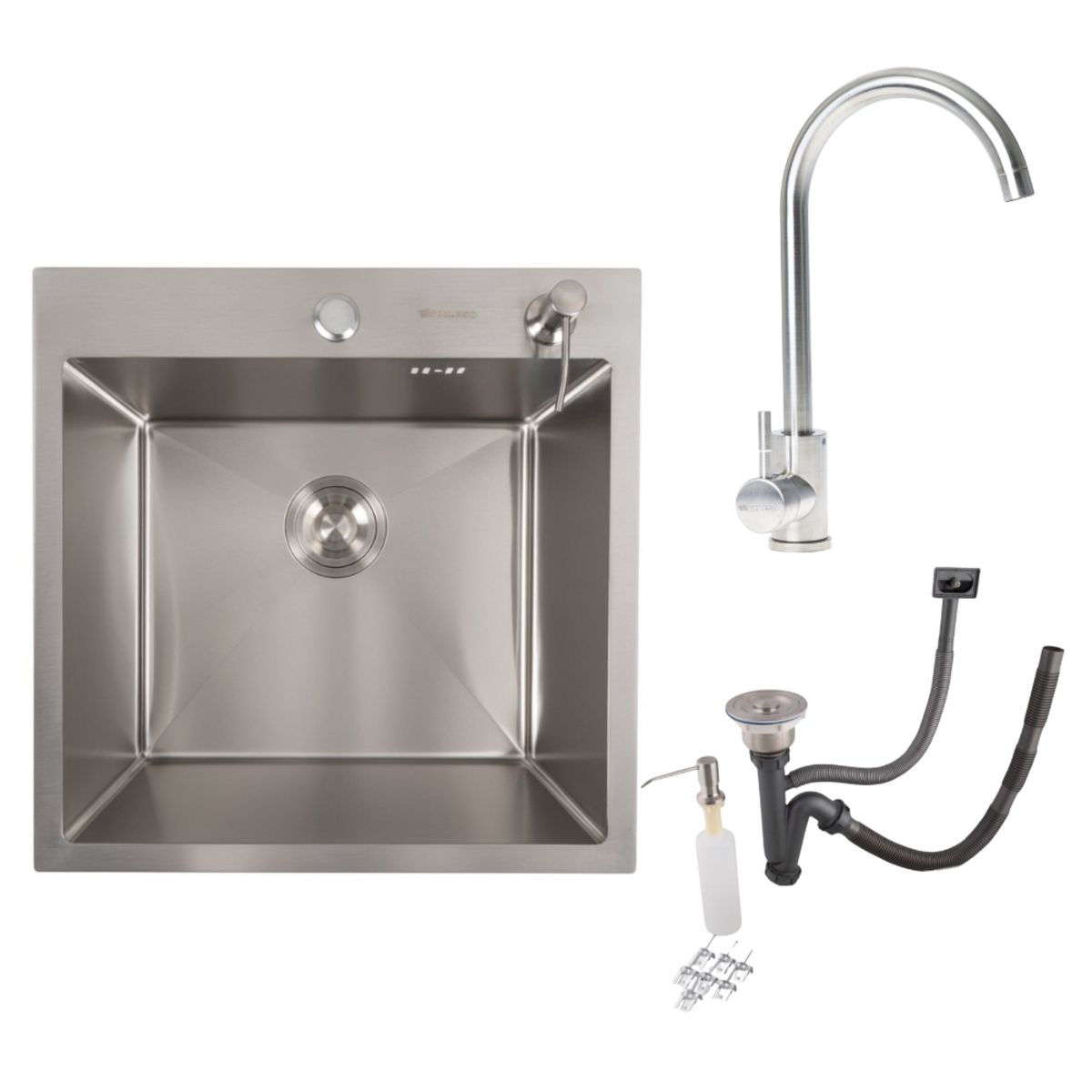 Кухонний комплект: Мийка VALESO Handmade (50x50 см) ДЕКОР нержавійка + Змішувач 56 NESP