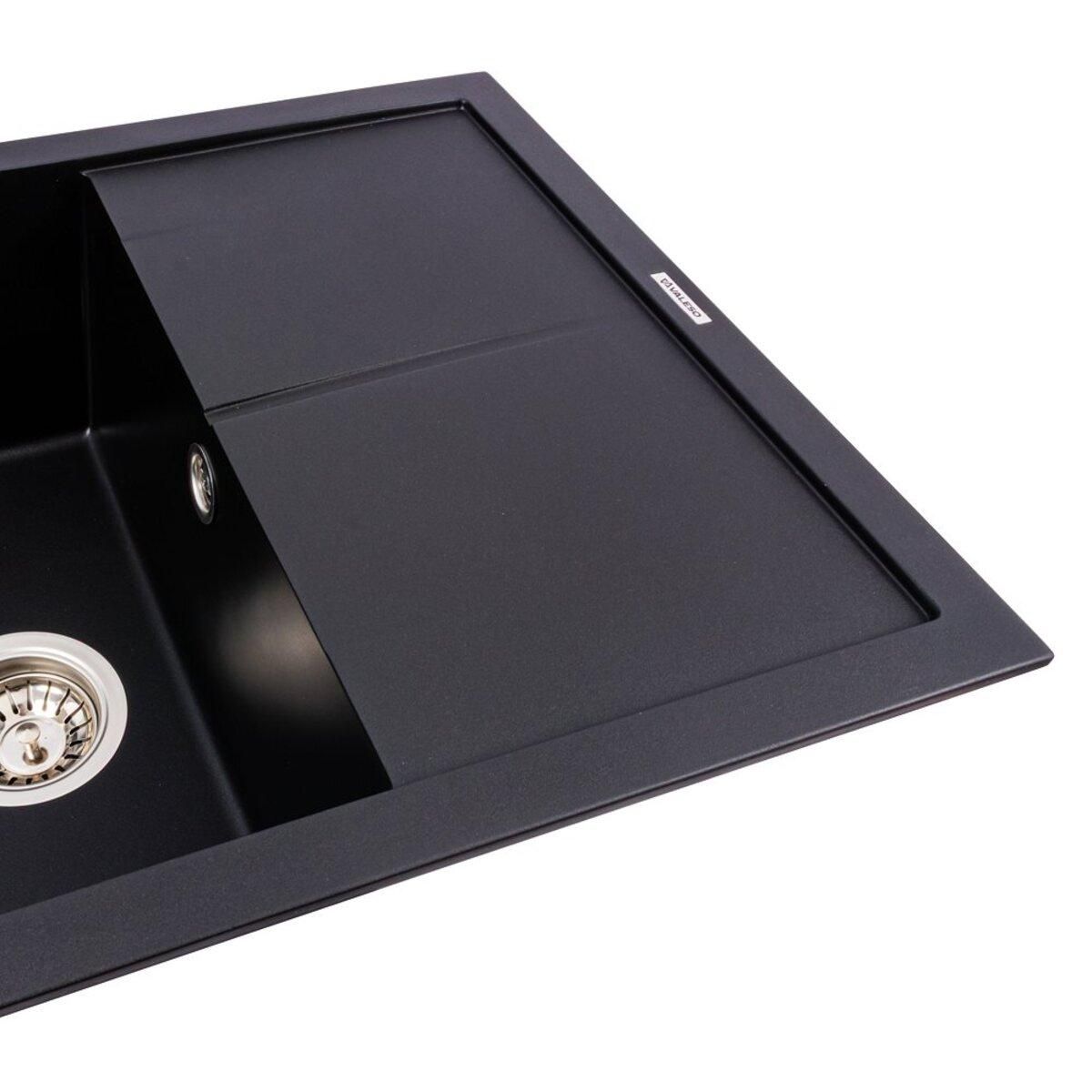 КОМПЛЕКТ: Мийка гранітна 7950 CALYPSO VALESO + Змішувач Q411MB + Сифон (Чорний)