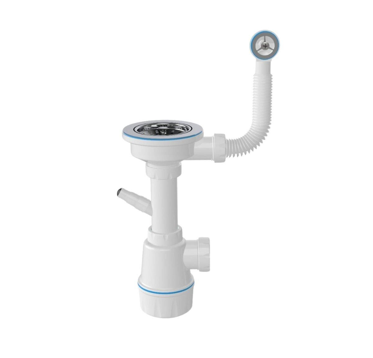 Надійний Сифон Nova 1041 Комплект завершує високоякісний одинарний сифон Nova 1041. Виготовлений з міцного пластику, він має безгофровий дизайн, що запобігає засміченням. Компактні розміри сифона допомагають ефективно використовувати простір під мийкою.