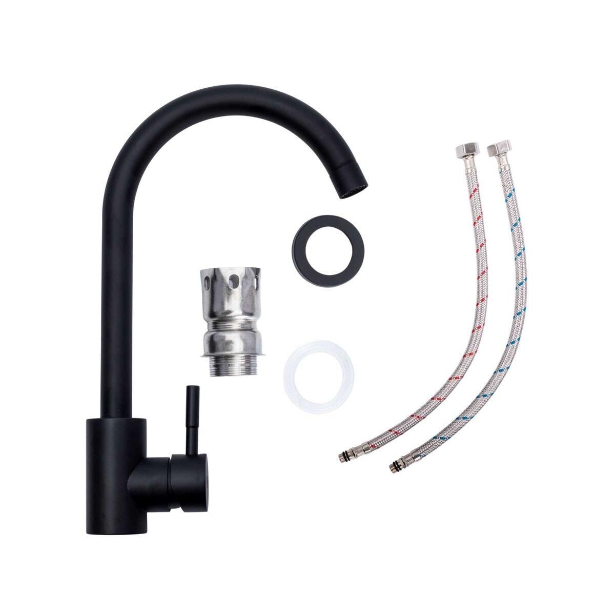 Стильний Змішувач VALESO BG76 Гармонійне доповнення до мийки — змішувач VALESO BG76 в чорному матовому кольорі. Його витончений дизайн та зручна висота (325 мм) дозволяють легко наповнювати великі каструлі. Змішувач має довжину виливу 145 мм та поставляється з усіма необхідними кріпленнями та шлангами для швидкої установки.