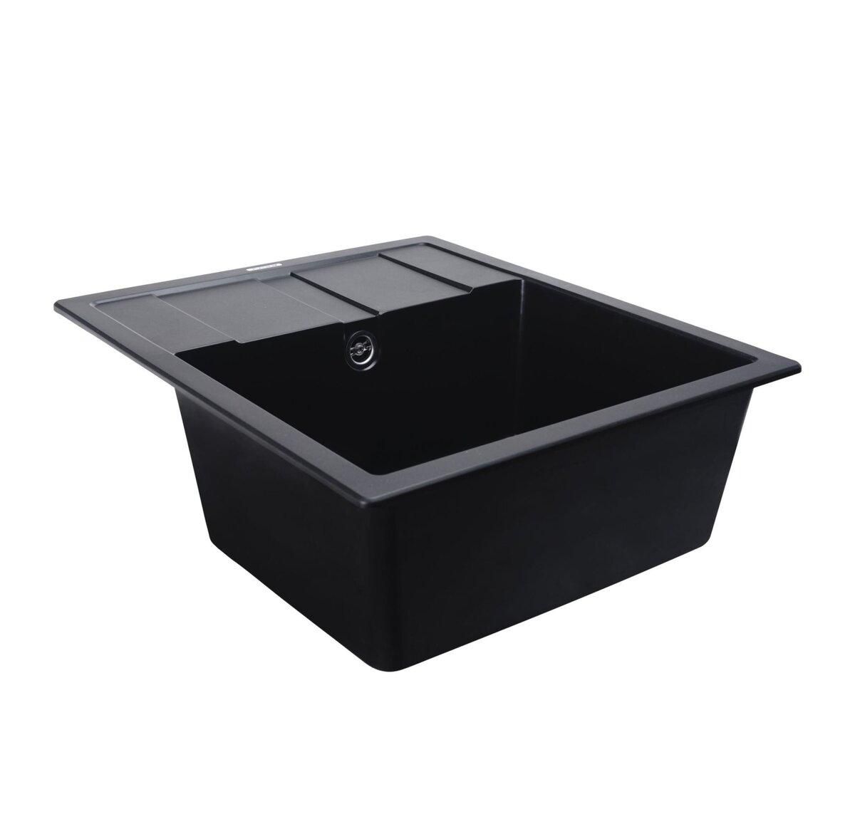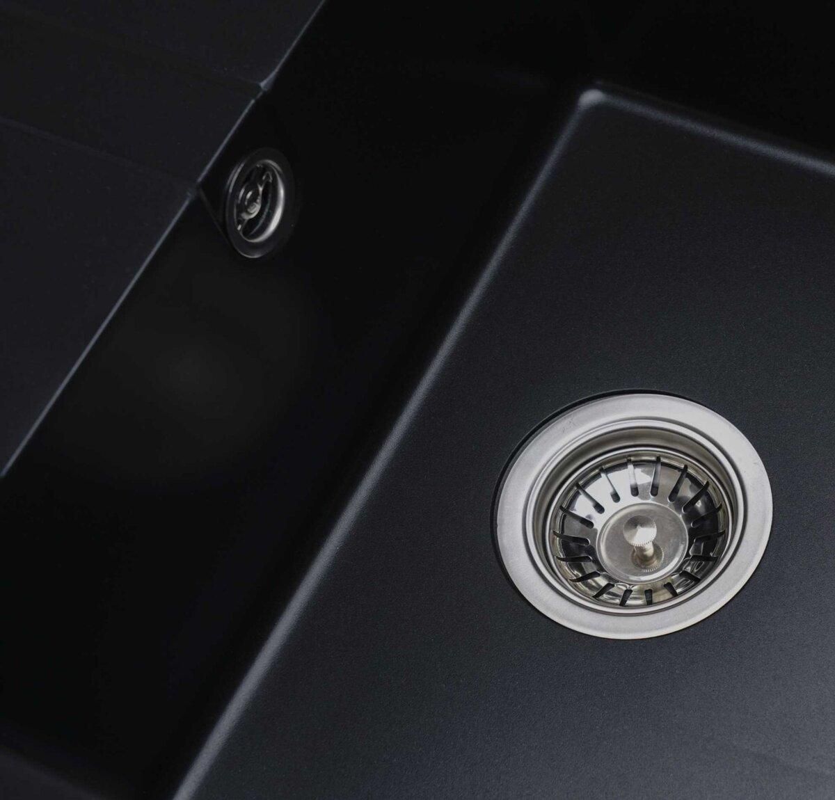 Гранітна Мийка Aria 5851 Серце цього комплекту — мийка VALESO Aria 5851 у елегантному чорному кольорі. Виготовлена з 80% кварцу, вона стійка до подряпин, ударів, високих температур та УФ-променів, зберігаючи свій ідеальний вигляд роками. Простора чаша (432х436х180 мм) і зручне крило для сушіння роблять її надзвичайно практичною для щоденного використання.