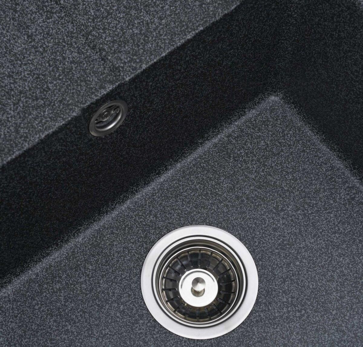 Надійна гранітна мийка ARIA 5851 Центральний елемент комплекту — мийка VALESO ARIA 5851 у глибокому кольорі "графіт". Виготовлена з 80% кварцу, вона надзвичайно стійка до механічних пошкоджень, подряпин та перепадів температур. Простора чаша (432х436х180 мм) та інтегрований відділ для сушіння забезпечують зручність у щоденному використанні, а матова поверхня легко очищається і зберігає свій первісний вигляд роками.