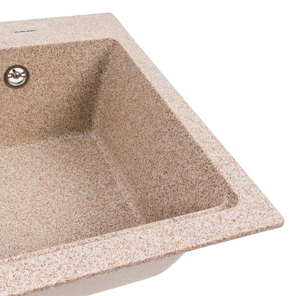 Гранітна мийка для кухні 7545 NIKA Карамель українського бренду VALESO - це стильна, врізна, прямокутна мийка, яка своїм виглядом чудово доповнить дизайн вашої кухні. Мийка на 80% складається з кварцу та на 20% з надзвичайно твердої акрилової смоли, завдяки чому невибаглива у догляді, а також має великий запас міцності.