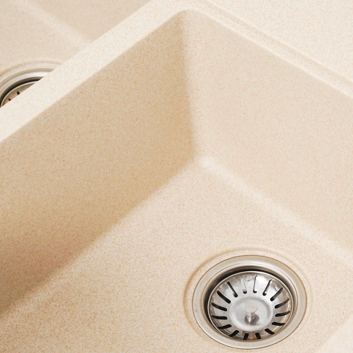 Мийка на 80% складається з кварцу та на 20% з надзвичайно твердої акрилової смоли, завдяки чому невибаглива у догляді, а також має великий запас міцності.