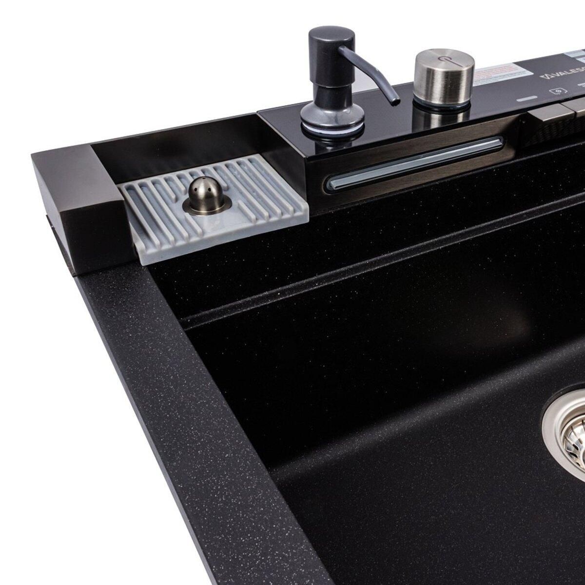 Гранітна мийка VALESO 6846 IRENA матова (чорний металік) з розширеною комплектацією