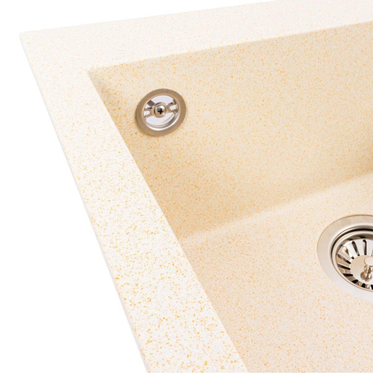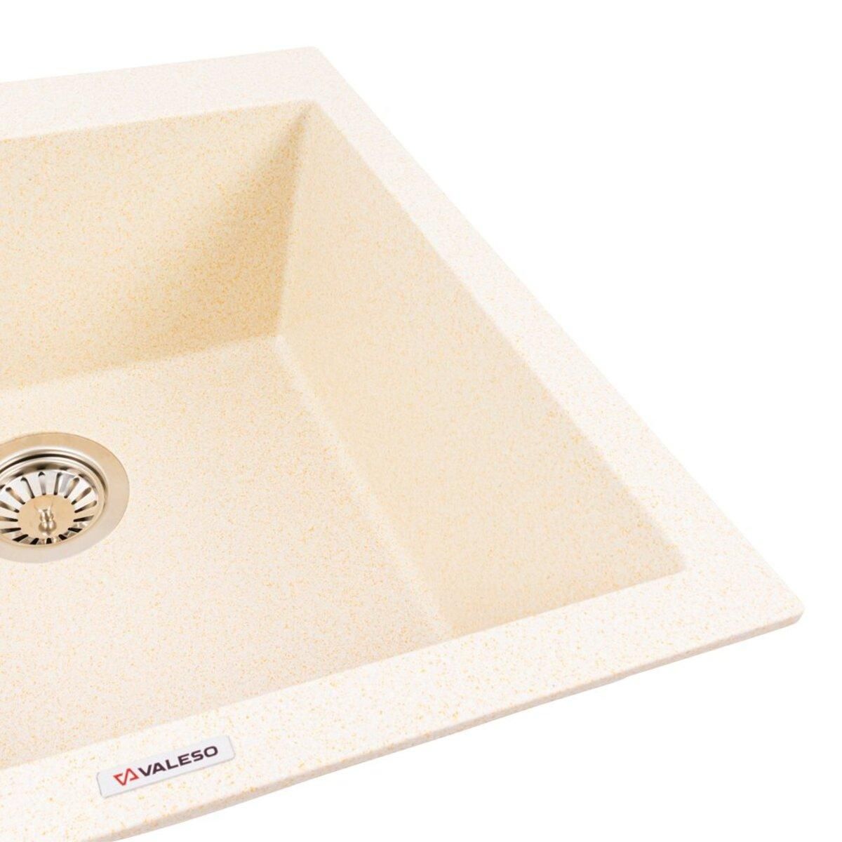 Мийка гранітна матова VALESO 5050 GALAX Пісок — компактна кухонна мийка з матовим покриттям у теплому пісочному відтінку. Завдяки глибокій чаші 200 мм вона зручна у щоденному користуванні, а класичний квадратний розмір 500×500 мм ідеально підходить для невеликих кухонь, забезпечуючи максимум функціональності в обмеженому просторі. Мийка виготовлена з міцного композитного матеріалу на основі граніту, що гарантує стійкість до механічних пошкоджень, високих температур і побутової хімії.