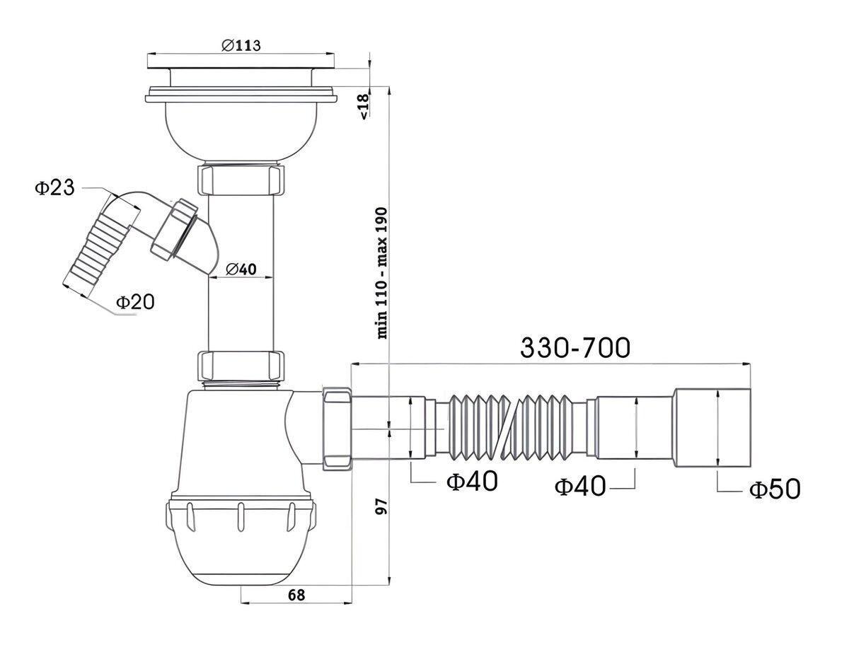 Сифон одинарний для гранітних мийок (білий) TM Valeso (арт. 610)