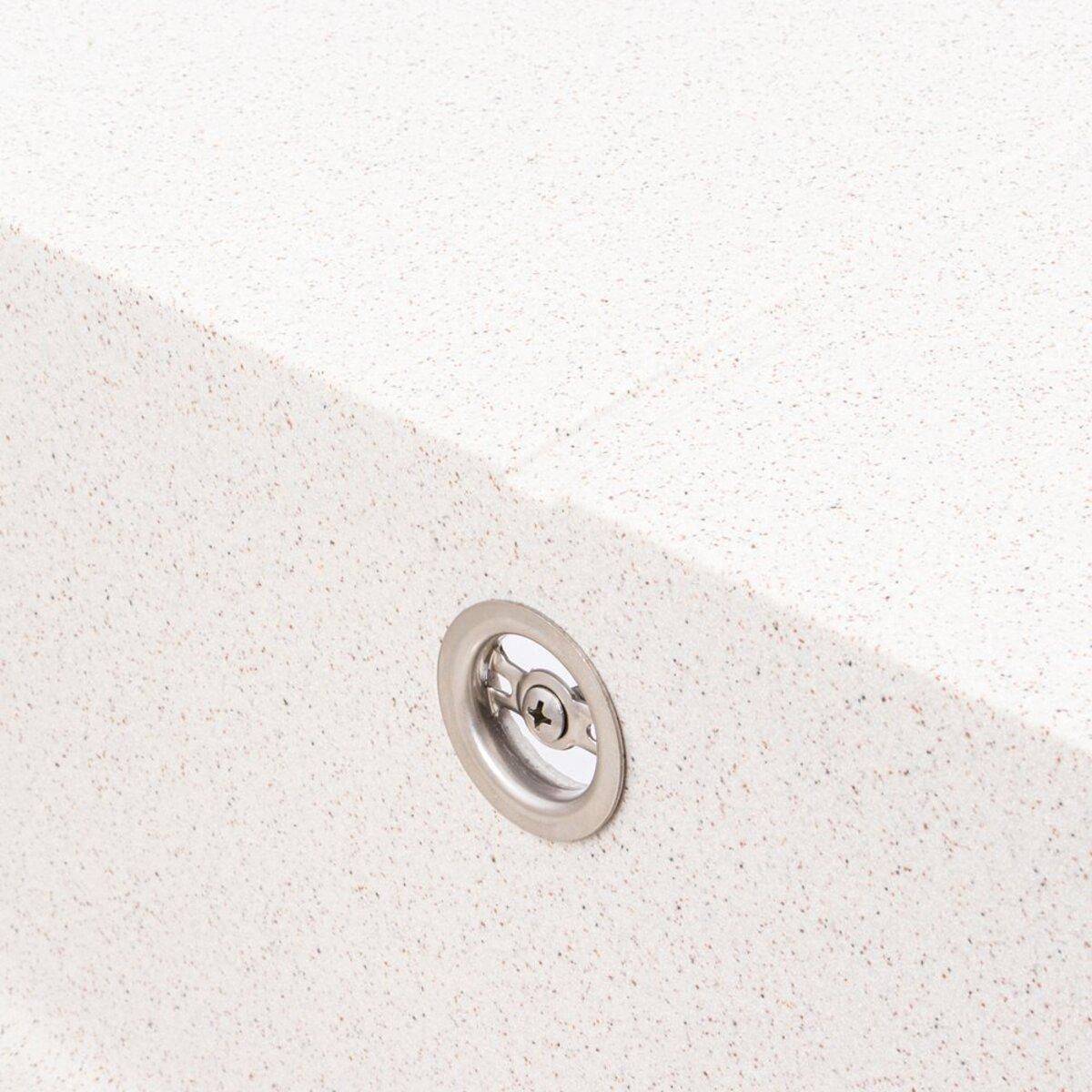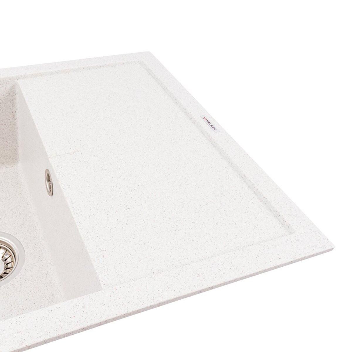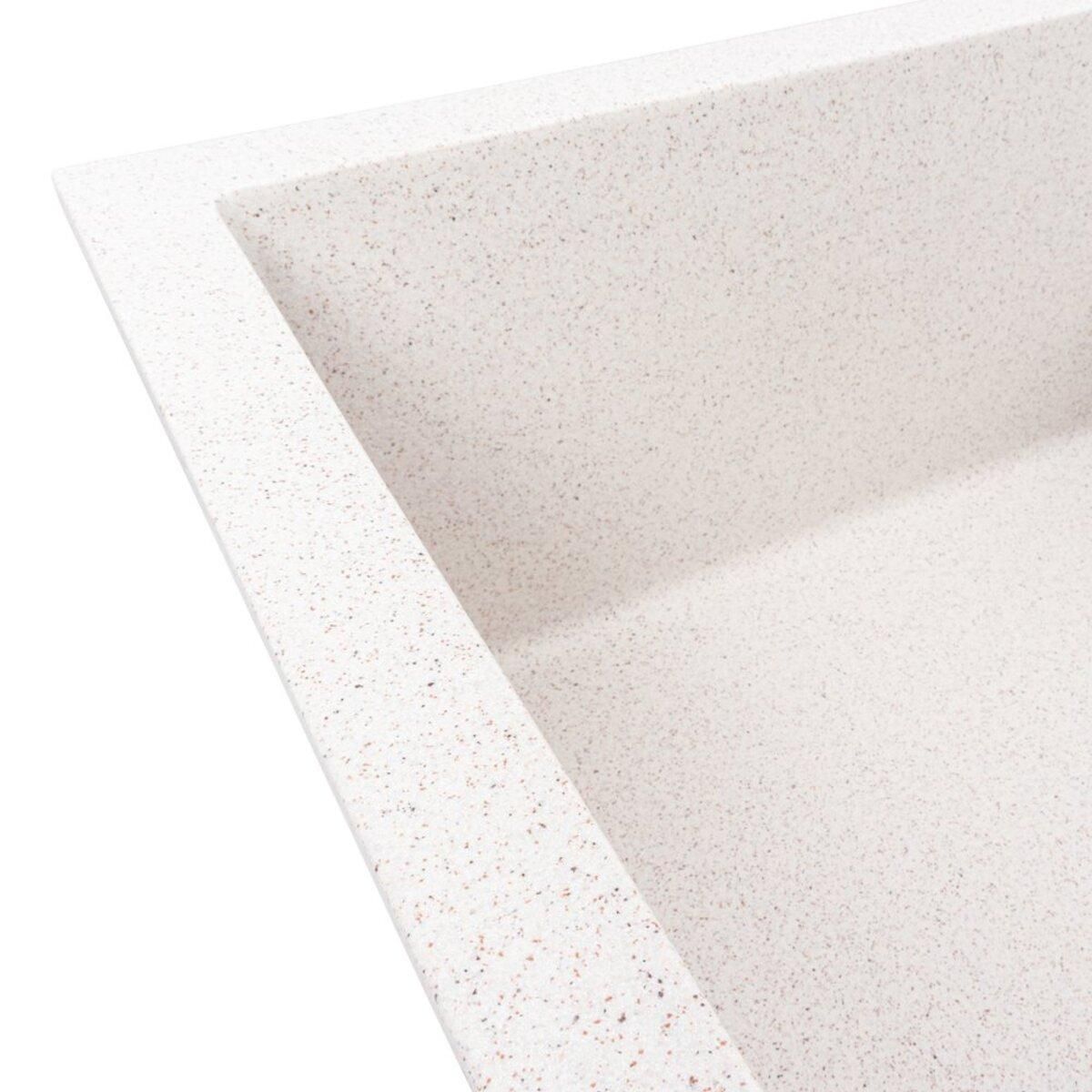 Матеріал мийки — штучний камінь, який має високу щільність, не вбирає вологу, витримує температурні перепади та механічні навантаження. Поверхня легко очищується і зберігає первинний вигляд тривалий час.