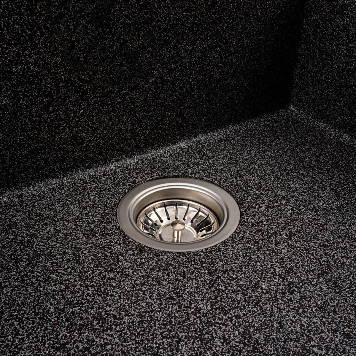 Мийка на 80% складається з кварцу та на 20% з надзвичайно твердої акрилової смоли. Виріб виготовлено в Україні із якісної німецької сировини за технологією Solid Surface з дотриманням усіх необхідних стандартів, що гарантує великий запас міцності та невибагливість у догляді.