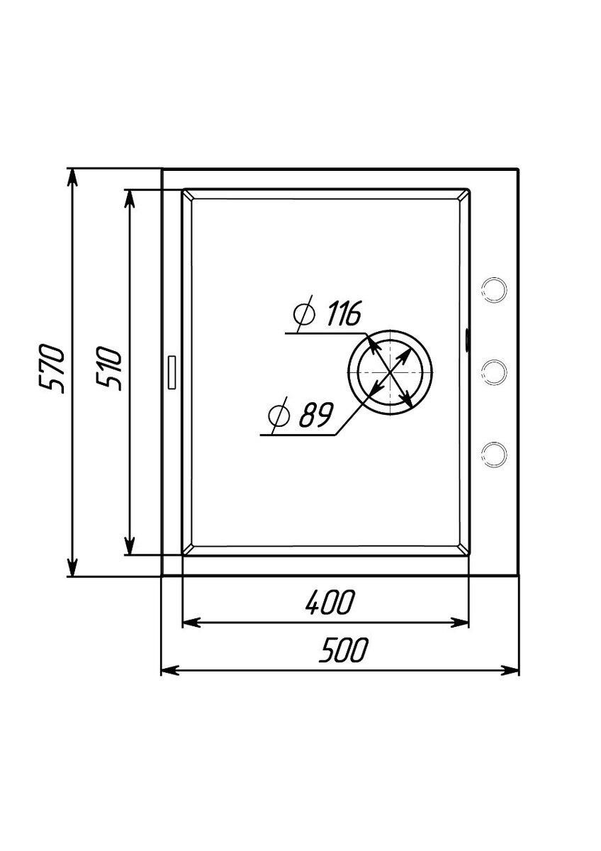 Розмір мийки (ШхГхВ): 570x500x200 мм.
