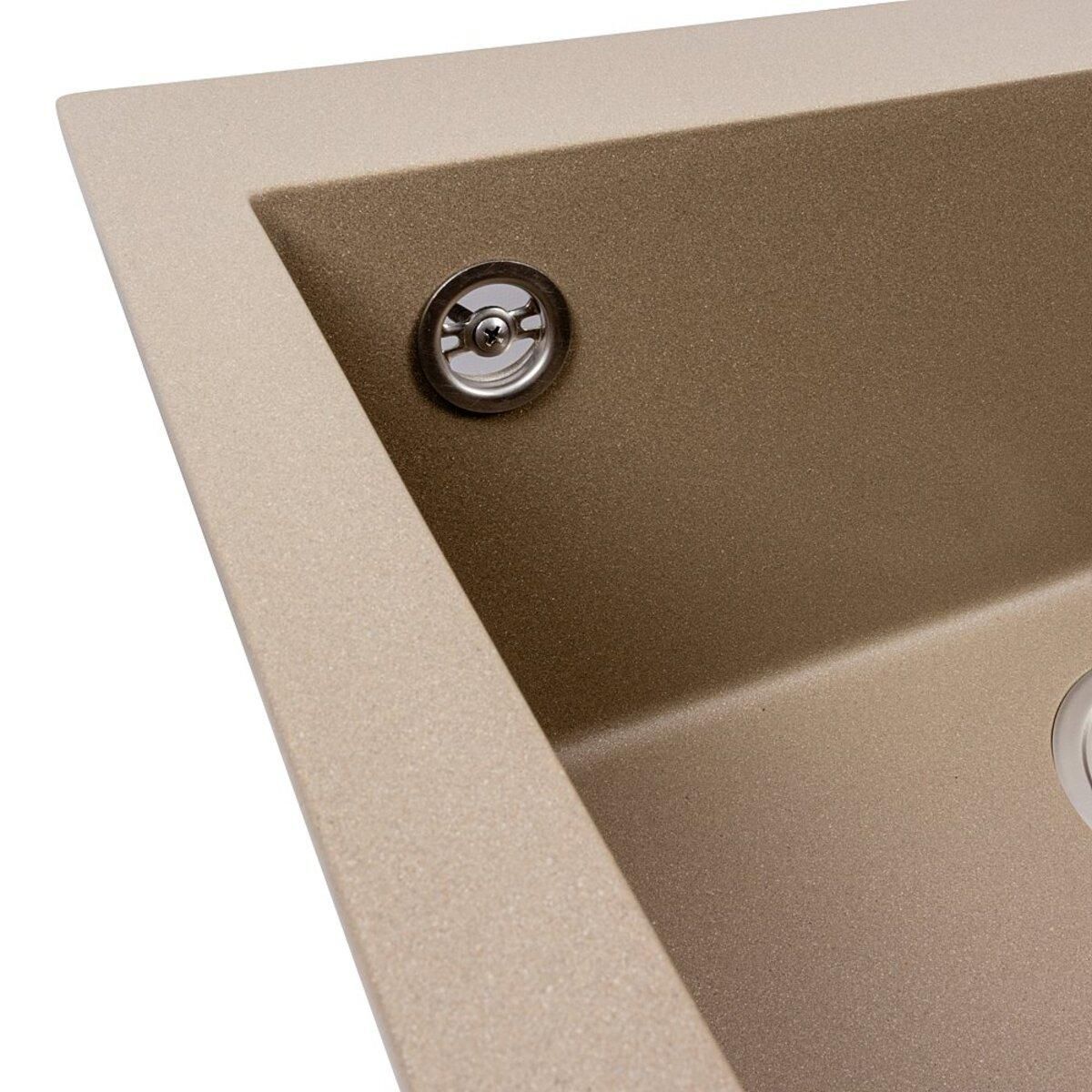 Мийка на 80% складається з кварцу та на 20% з надзвичайно твердої акрилової смоли. Виріб виготовлено в Україні із якісної німецької сировини за технологією Solid Surface з дотриманням усіх необхідних стандартів, що гарантує великий запас міцності та невибагливість у догляді.