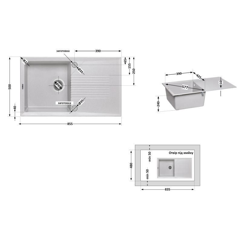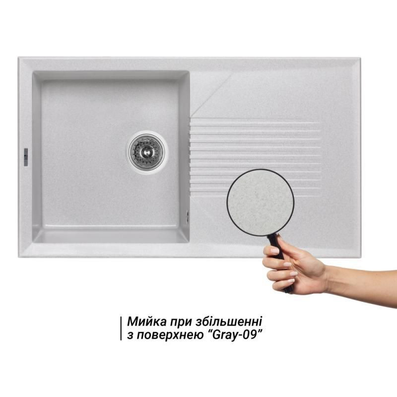 Кухонна мийка Lidz (GRA-09) 860x500 — це поєднання елегантності та практичності для комфортної роботи на кухні. Врізна мийка з міцного штучного каменю стійка до подряпин, ударів і перепадів температур. Простора та глибока чаша забезпечує зручність під час миття великого посуду, а універсальне крило слугує додатковою робочою поверхнею.