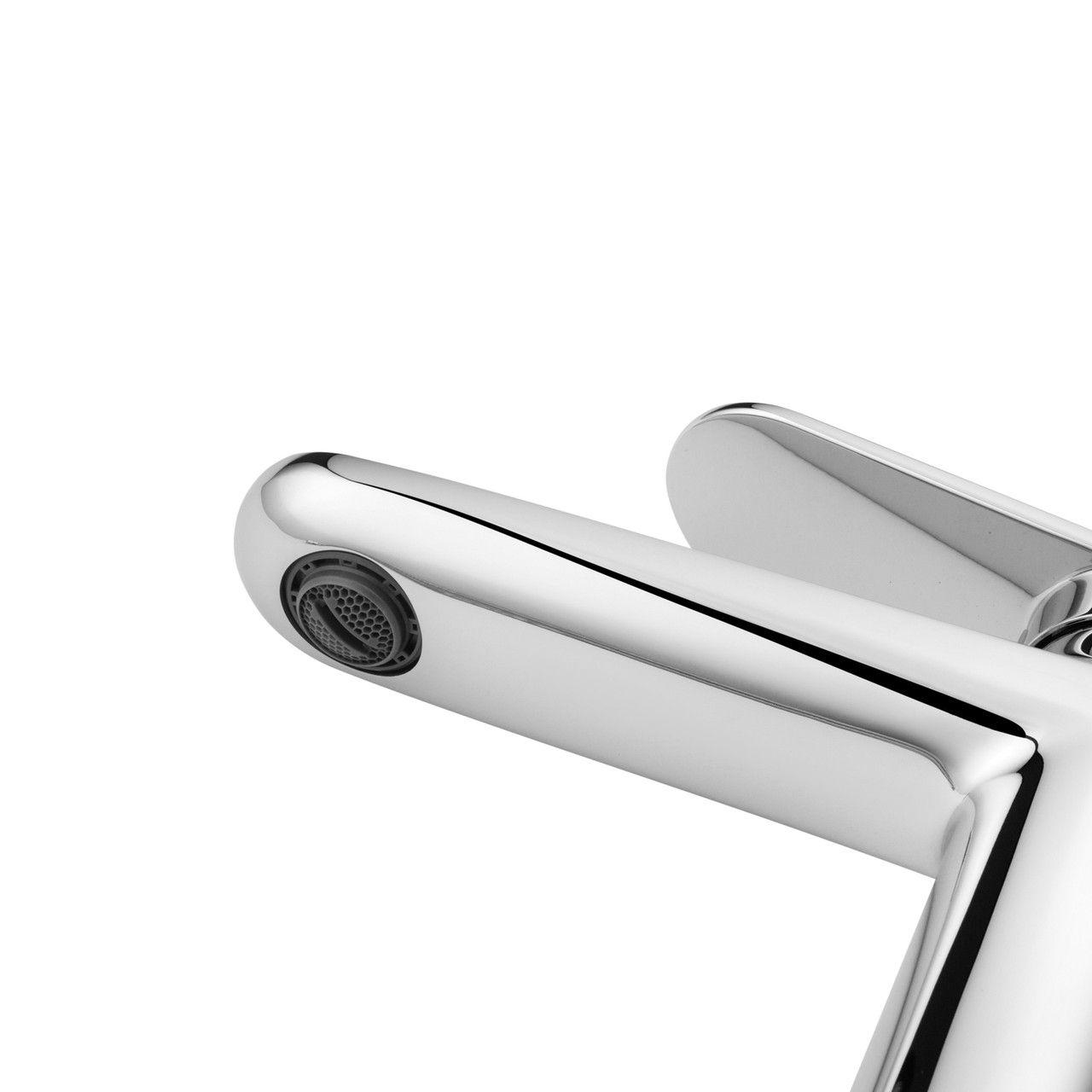 Змішувач для раковини Kroner Element 211110-0101 (хром) — елегантне та функціональне рішення для ванної кімнати в сучасному стилі. Дзеркально-гладка глянсова поверхня надає змішувачу виразний блиск і підкреслює чистоту інтер'єру, візуально роблячи простір світлішим і акуратнішим.