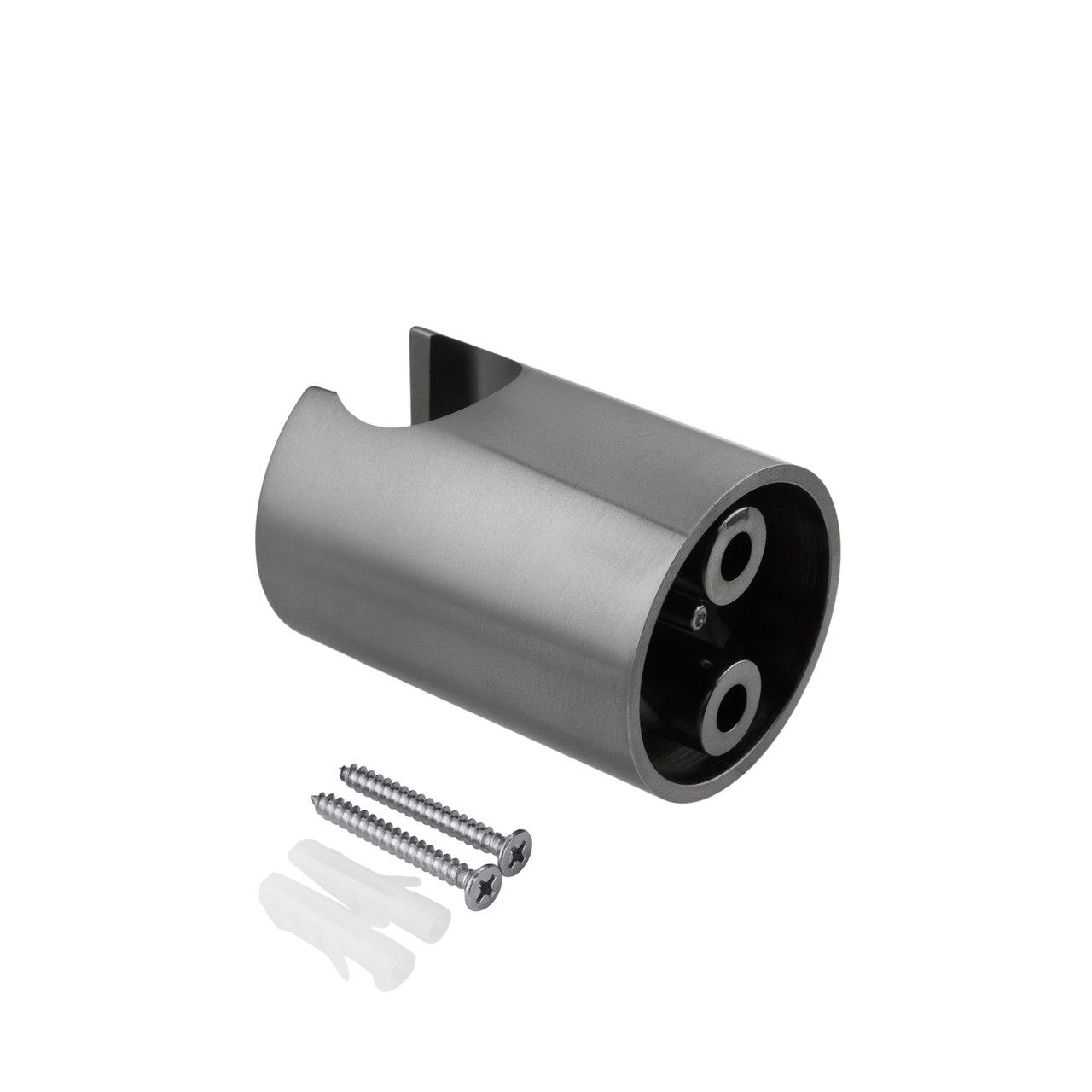 Установлення здійснюється за допомогою шурупів і дюбелів, що забезпечує міцне з'єднання зі стіною. Завдяки високоякісним матеріалам і стійкому графітовому покриттю тримач гарантує довговічність, корозійну стійкість і надійну фіксацію лійки під час щоденного використання.