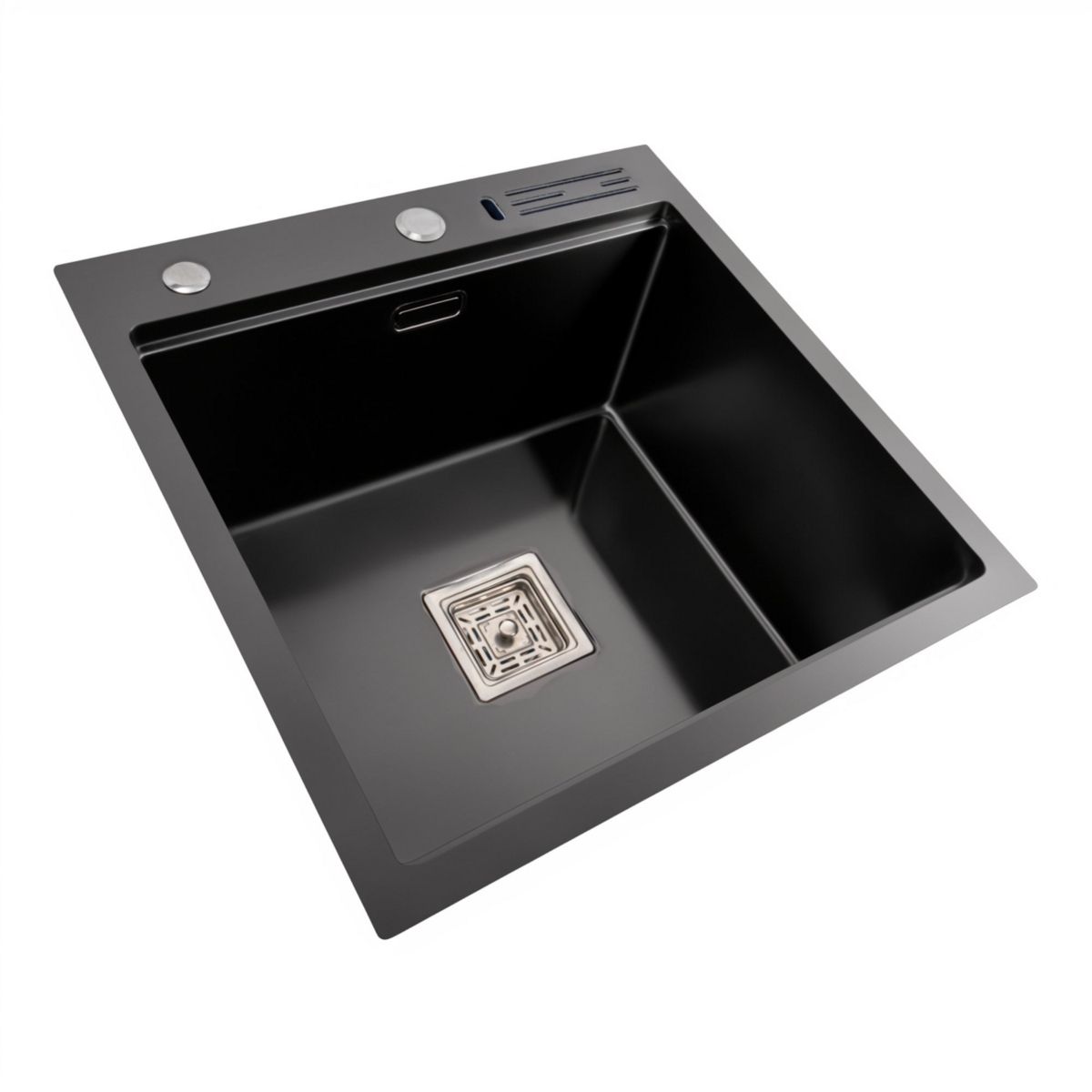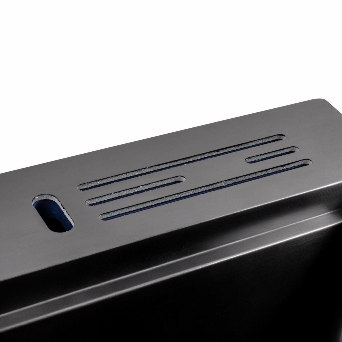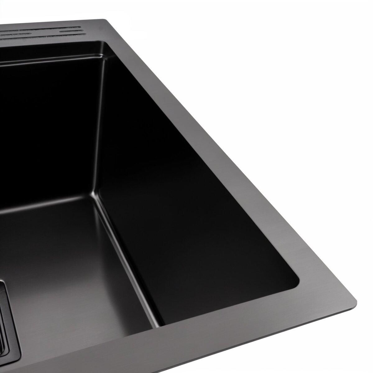 Розмір мийки 500х500х230мм, а чаші - 425×360×230 мм, що робить її ідеальною для різноманітних кухонь. Виготовлена з високоякісної нержавіючої сталі SUS 201 з PVD покриттям, вона не тільки стійка до корозії, але і має чорний Platinum Handmade дизайн, який додає елегантності вашій кухні.