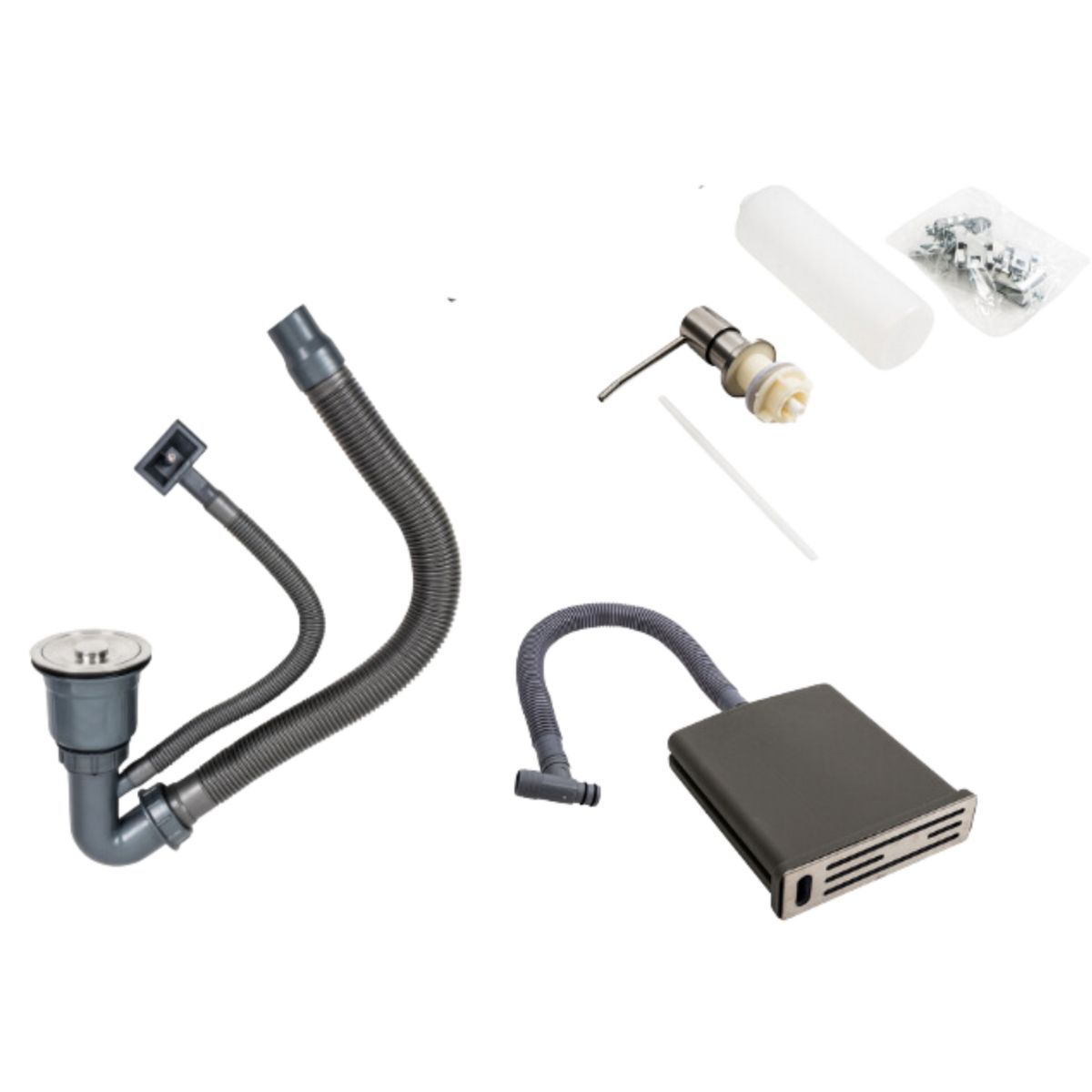 Кухонна мийка обладнана двома отворами під змішувач та дозатор, що забезпечує зручність використання. Підставка для ножів додає практичності та організованості вашому робочому простору.