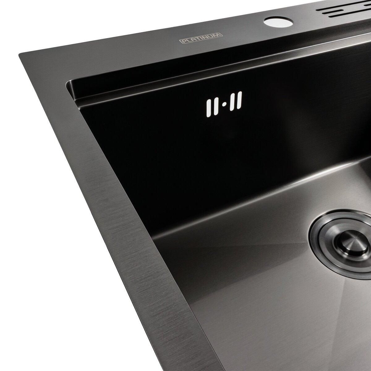 Оберіть Кухонну мийку чорну PVD 60х50 Platinum Handmade з підставкою для ножів і насолоджуйтесь комфортом і стилем в кожній деталі вашого кулінарного досвіду!