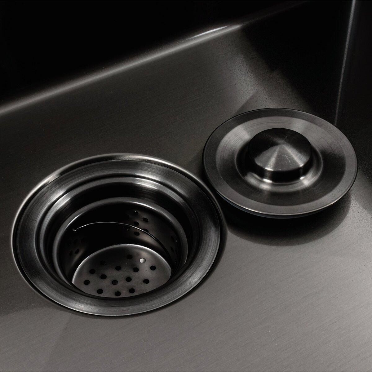 Чорна кухонна мийка PVD 60х50 з ножовою підставкою + подарунковий сифон та дозатор