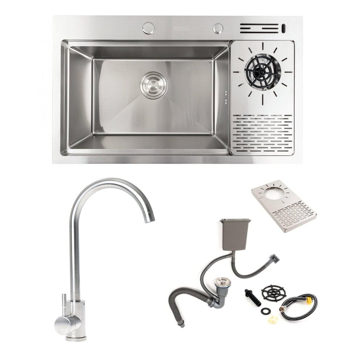 Нержавіюча кухонна мийка 78x46 Platinum Handmade з кухонним змішувачем, дозатором та коландером