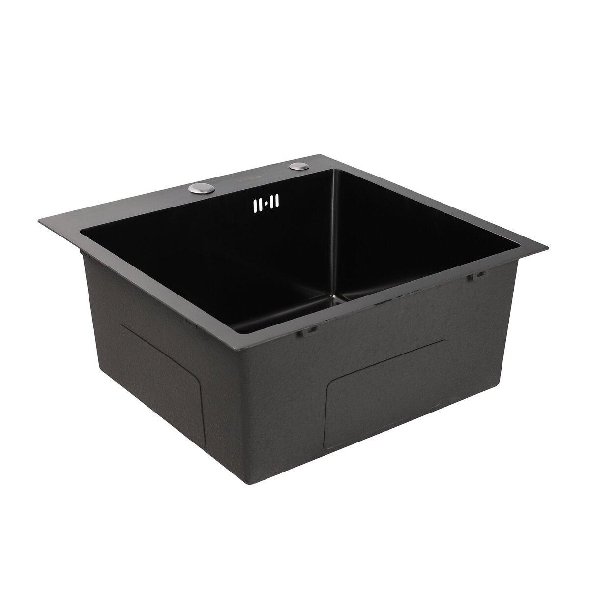 Кухонна мийка 50*50 PVD чорна Platinum Handmade (сифон круглий, 3,0/0,8)