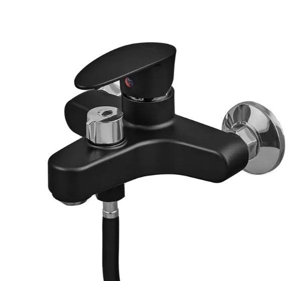 Змішувач для ванни з термопластику Cezar 009 Euro Black іде у комплекті зі шлангом для душу, душовою лійкою, кронштейном для лійки, ексцентриками з декораторами та усіма необхідними прокладками.