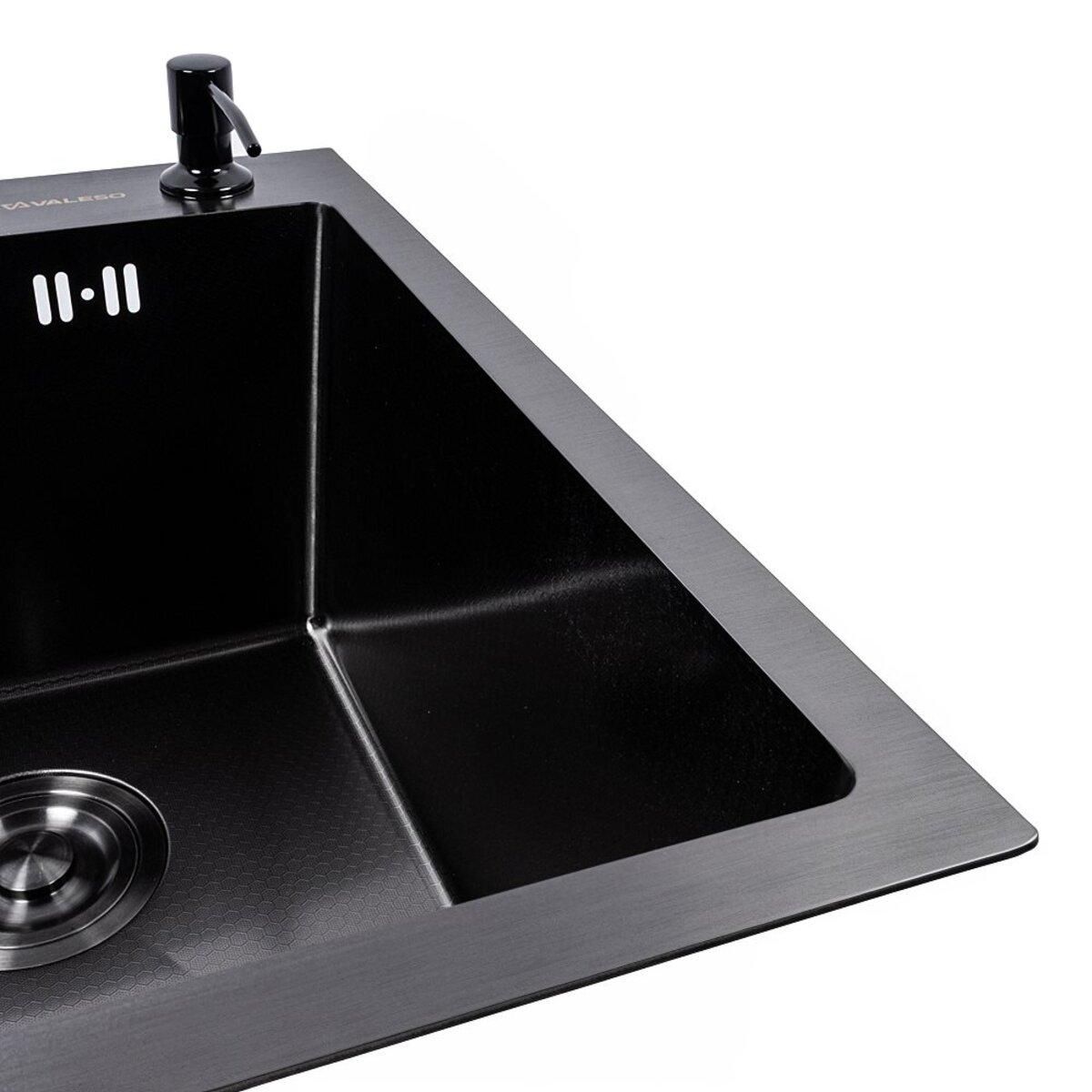 Кухонна мийка з нержавіючої сталі чорна DECOR VALESO Handmade