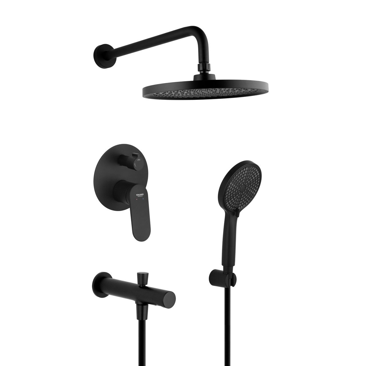 Душова система вбудована Kroner Element 211335A-3801 (чорний) — стильне та функціональне рішення для сучасної ванної кімнати. Глибокий чорний колір надає інтер'єру стриману елегантність і підкреслює актуальний дизайн, гармонійно поєднуючись з іншими елементами сантехніки. Матова поверхня практична в догляді, стійка до відбитків і легко очищається, зберігаючи акуратний зовнішній вигляд.