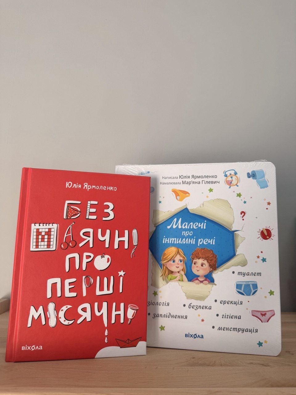 Цей дует книг — справжня "аптечка" для батьків, які хочуть дати своїм дітям правильну та безпечну освіту про їхнє тіло. Юлія Ярмоленко простою мовою, без міфів та забобонів, пояснює складні фізіологічні процеси. Дві сучасні й дуже потрібні книги, які допоможуть батькам легко та спокійно говорити з дітьми про тіло, особисті межі та дорослішання.