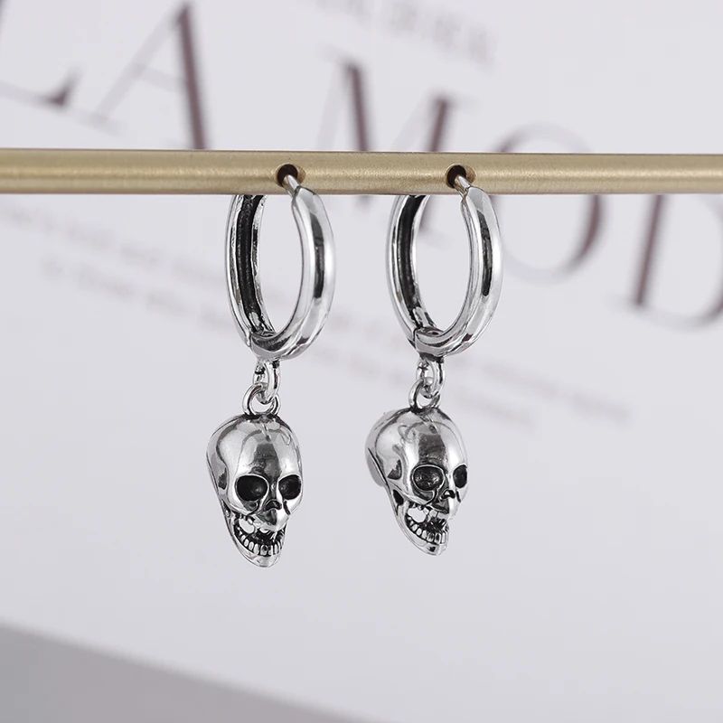 Сережки череп з висячим черепом готичні сережки-кільця круглі чоловічі 1шт