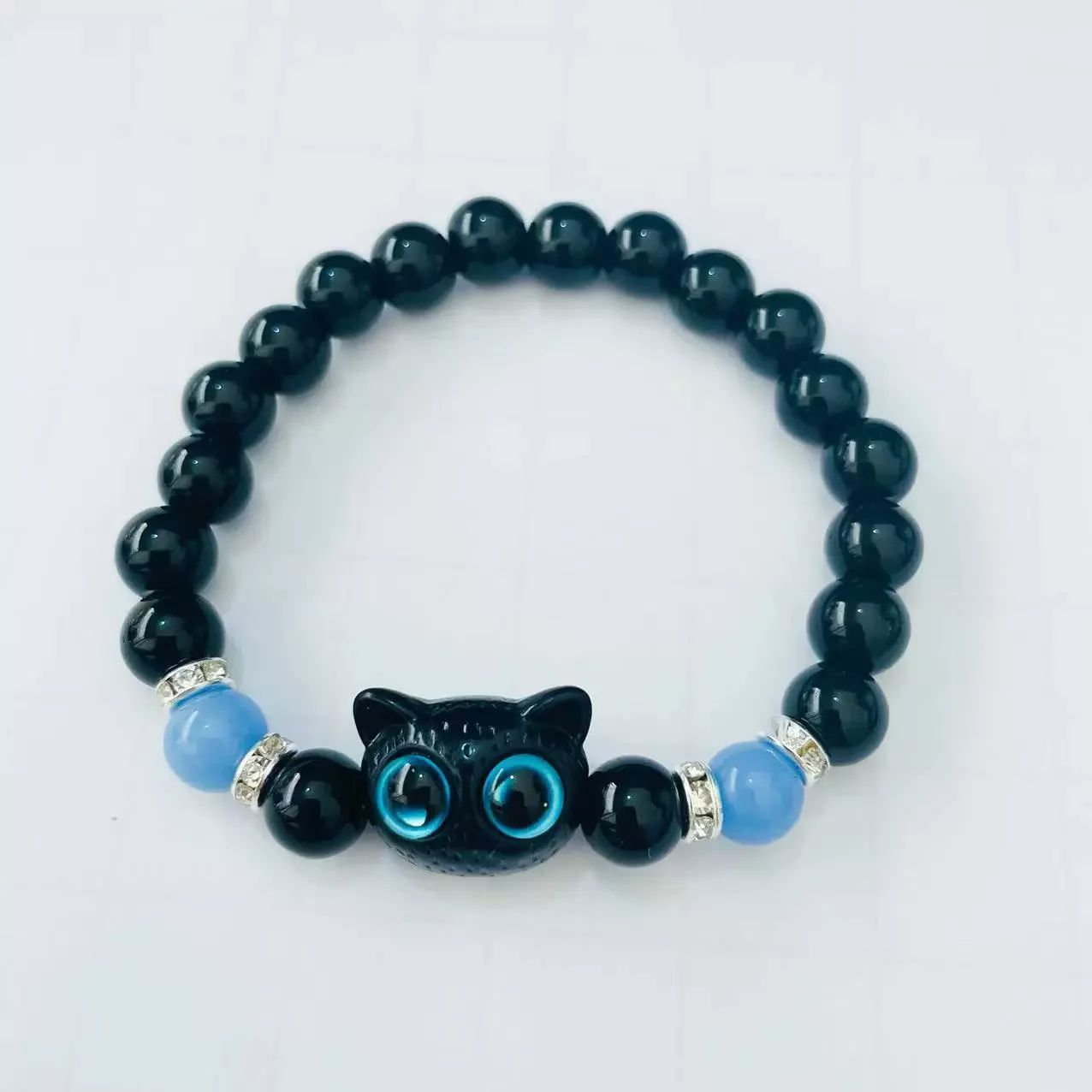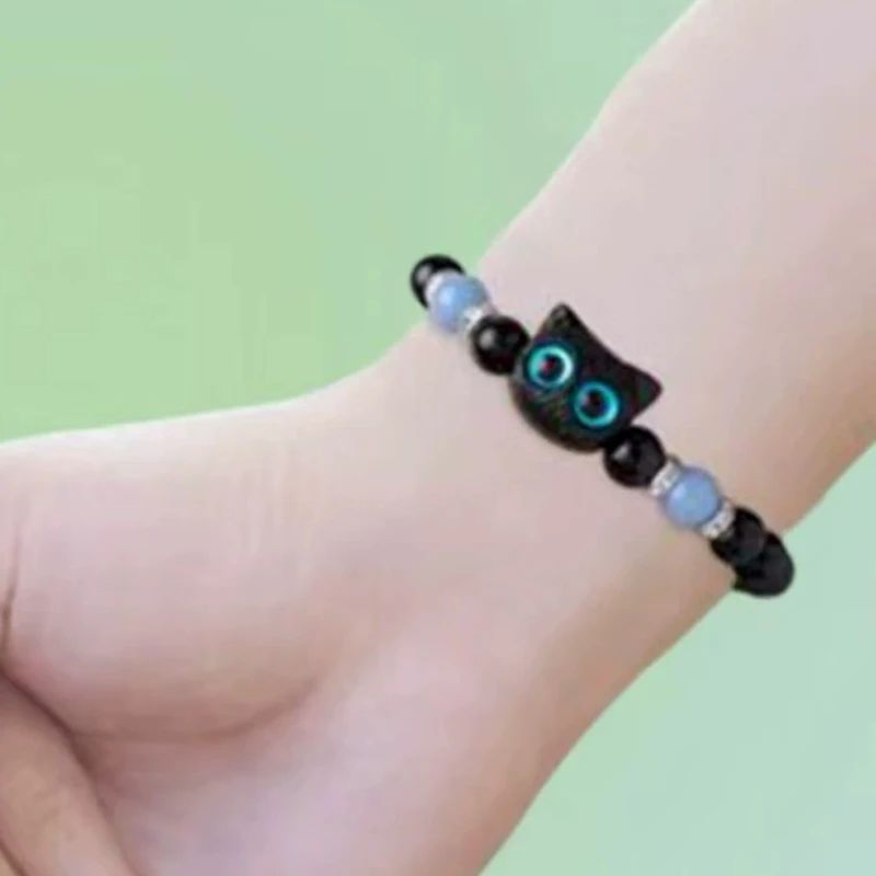 Браслет чорний милий кіт що світиться натуральний камінь кішка
