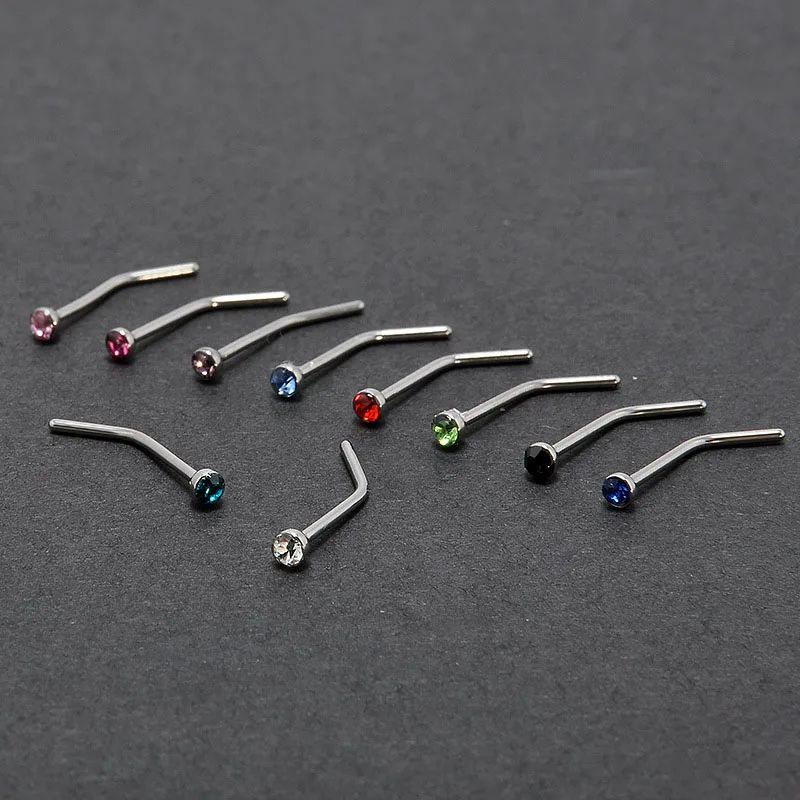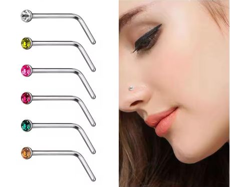 Сережки пірсинг в ніс з кристалами стрази для носа вігнутий з мед. сталі