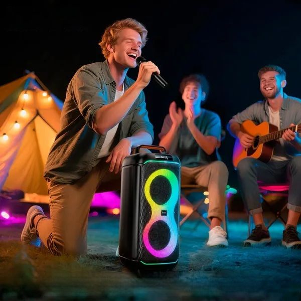 - У комплект входить бездротовий мікрофон, що дозволяє використовувати колонку для караоке одразу після покупки. Також підтримується з'єднання дротового мікрофона, розширюючи сценарії використання.
