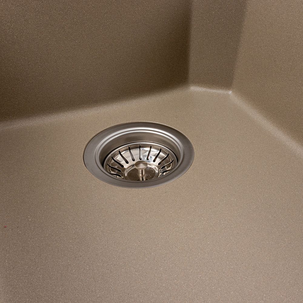 Неперевершена якість та склад: Мийка виготовлена в Україні з висококласної німецької сировини за технологією Solid Surface. Склад (80% кварцу та 20% акрилової смоли) забезпечує виробу кам'яну міцність та стійкість до будь-яких побутових випробувань.