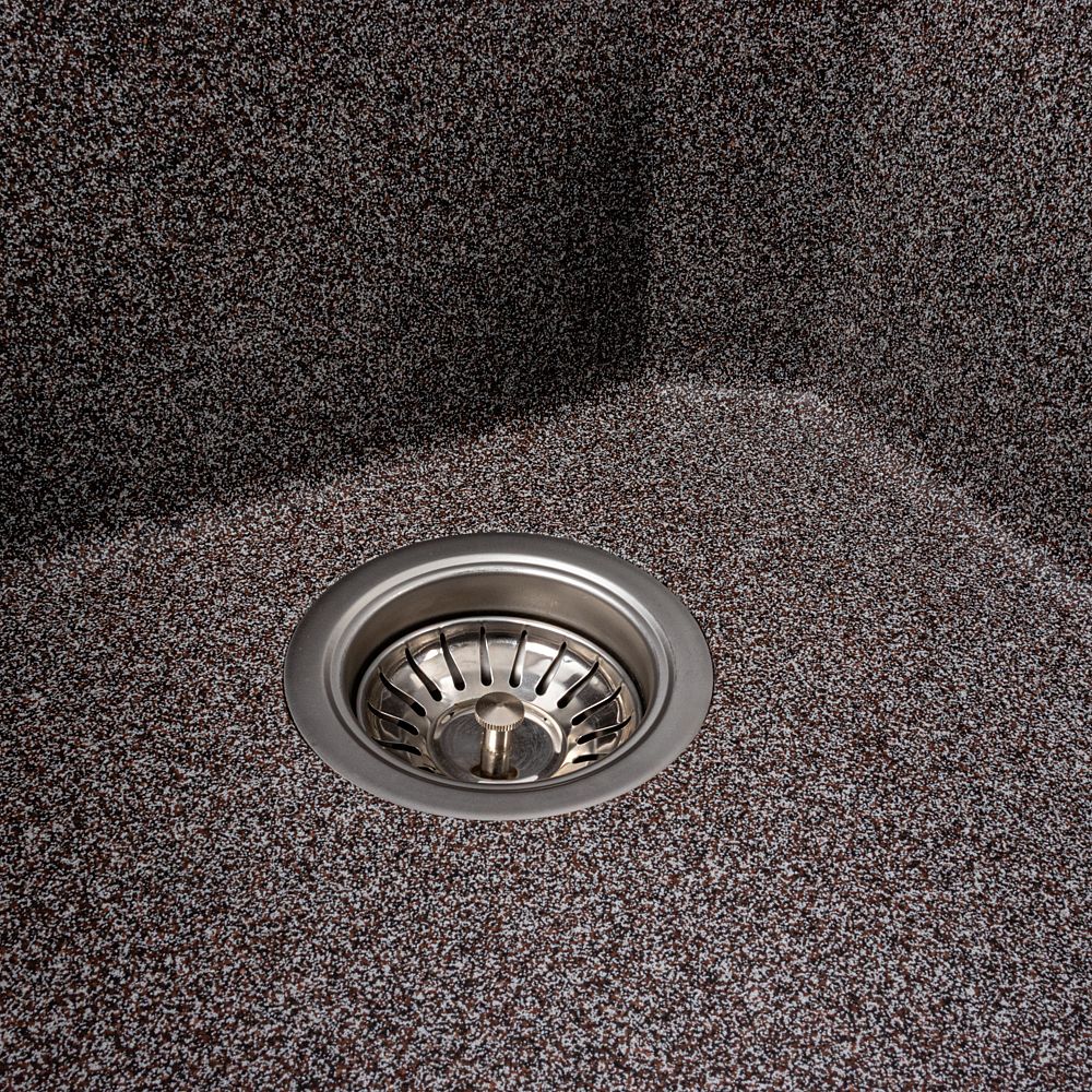 Неперевершена якість та склад: Мийка виготовлена в Україні з висококласної німецької сировини за технологією Solid Surface. Склад (80% кварцу та 20% акрилової смоли) забезпечує виробу кам'яну міцність та стійкість до будь-яких побутових випробувань.