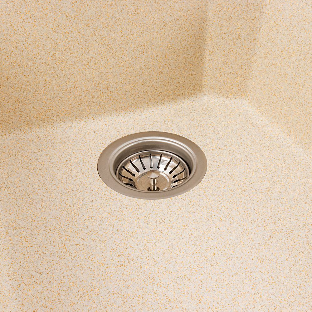 Неперевершена якість та склад: Мийка виготовлена в Україні з висококласної німецької сировини за технологією Solid Surface. Склад (80% кварцу та 20% акрилової смоли) забезпечує виробу кам'яну міцність та стійкість до будь-яких побутових випробувань.