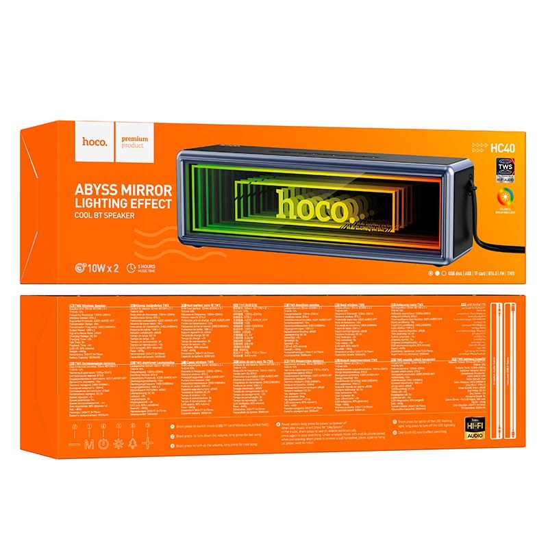 HOCO HC40 Luz — це портативна бездротова акустична система з ефектним дзеркальним підсвічуванням Abyss Mirror Lighting Effect, потужним стереозвуком та розширеними можливостями відтворення. Ця колонка створена для використання вдома, на вулиці, в подорожах та на вечірках, поєднуючи виразний дизайн, високу гучність та зручність перенесення.