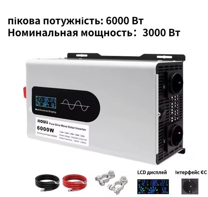 Перетворювач напруги з 24 на 220 Вольтів із піковою потужністю 6000 ватів.