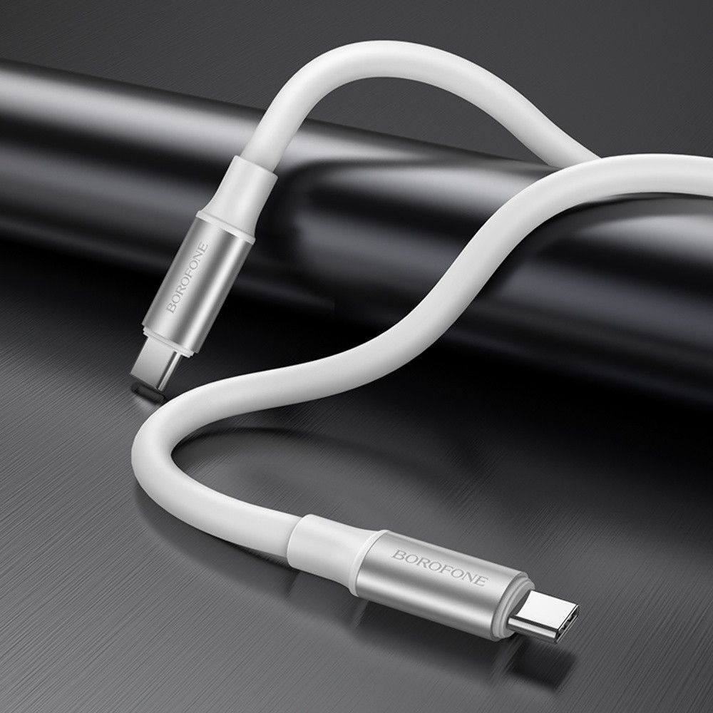 ΠΠ°Π±Π΅Π»Ρ USB Borofone BX114 Silicone, Type-C to Type-C, 60W, 1m, Π±ΡΠ»ΠΈΠΉ