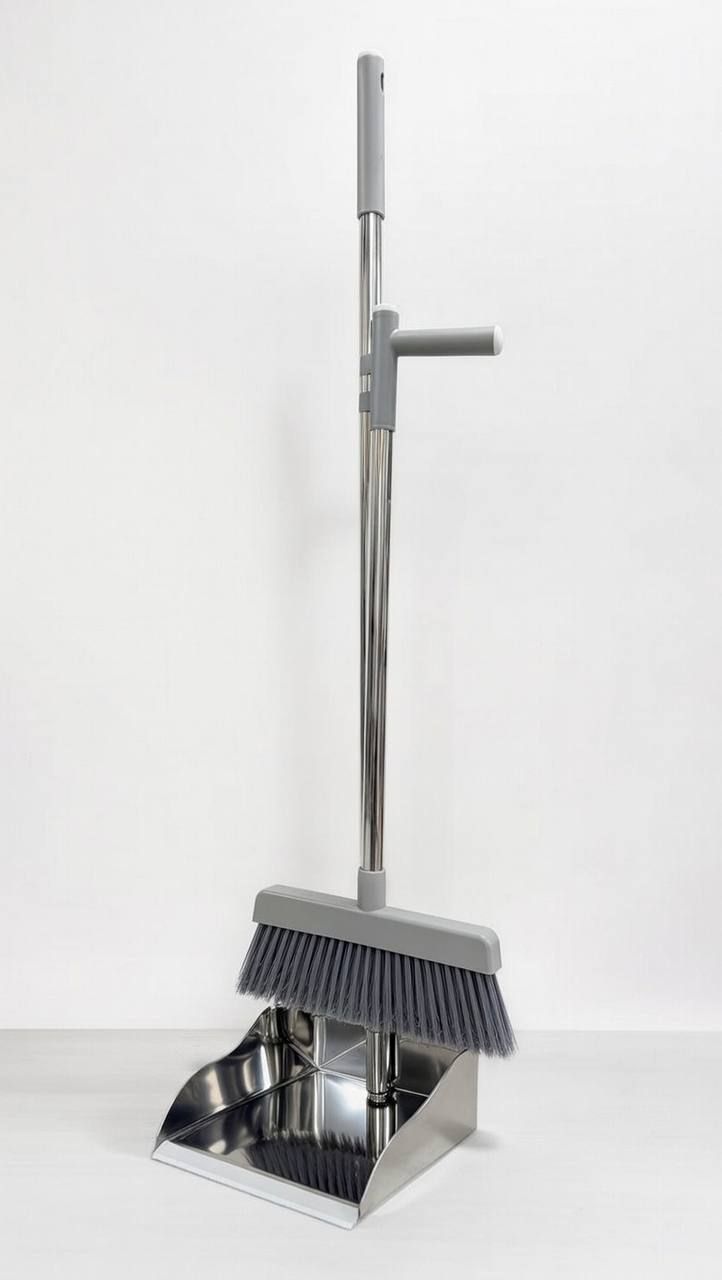 Совок з щіткою на довгій ручці з нержавіючої сталі 0032/grey